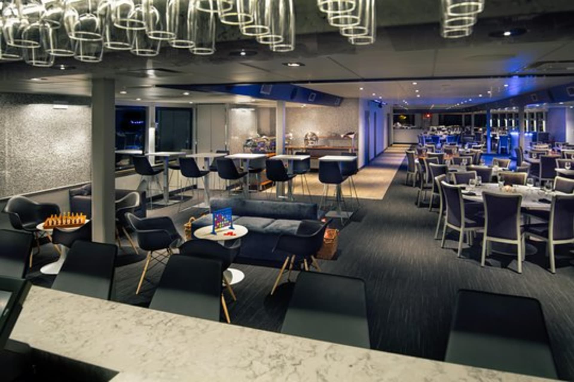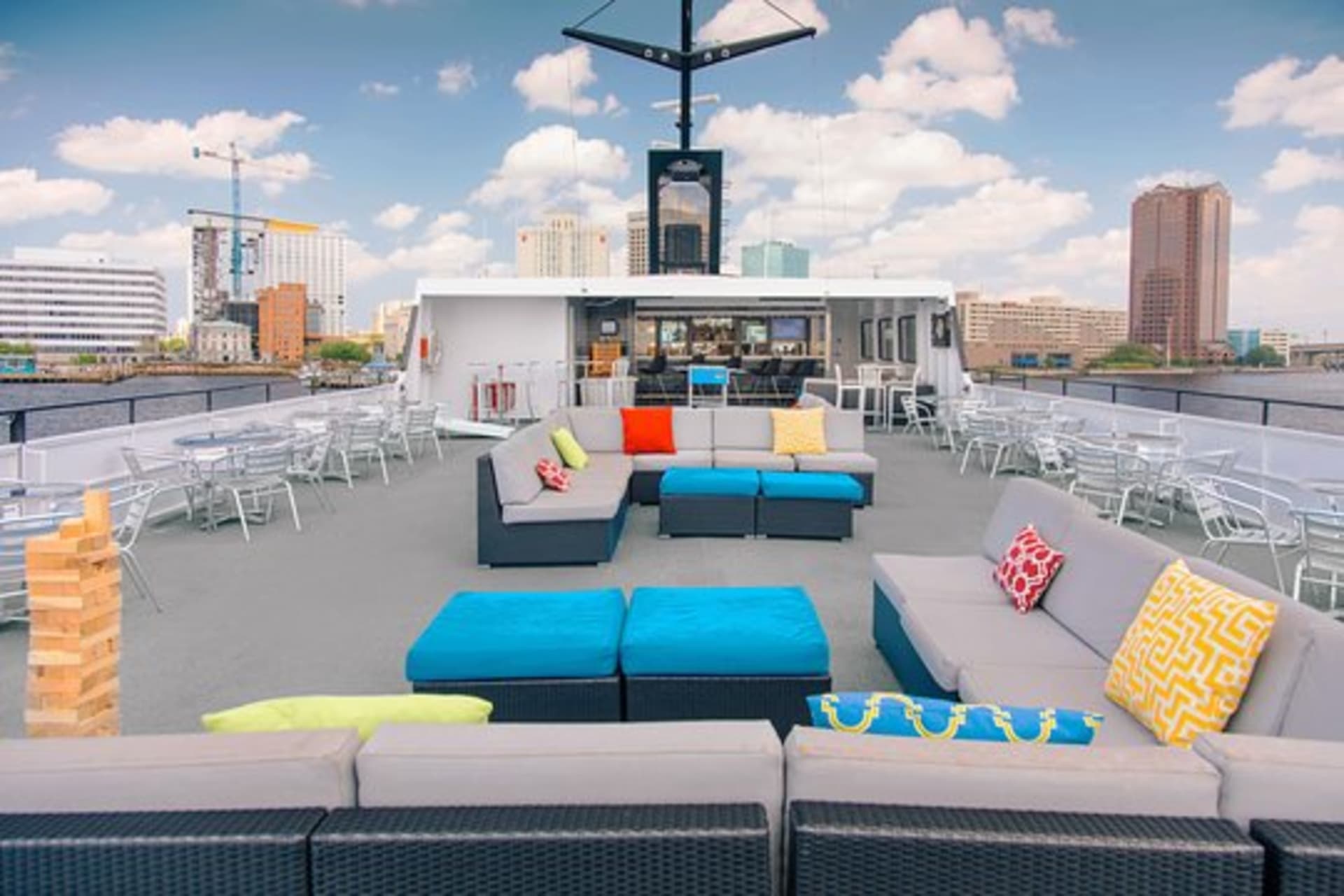 - - Curated music by onboard DJ, access to spacious lounge decks