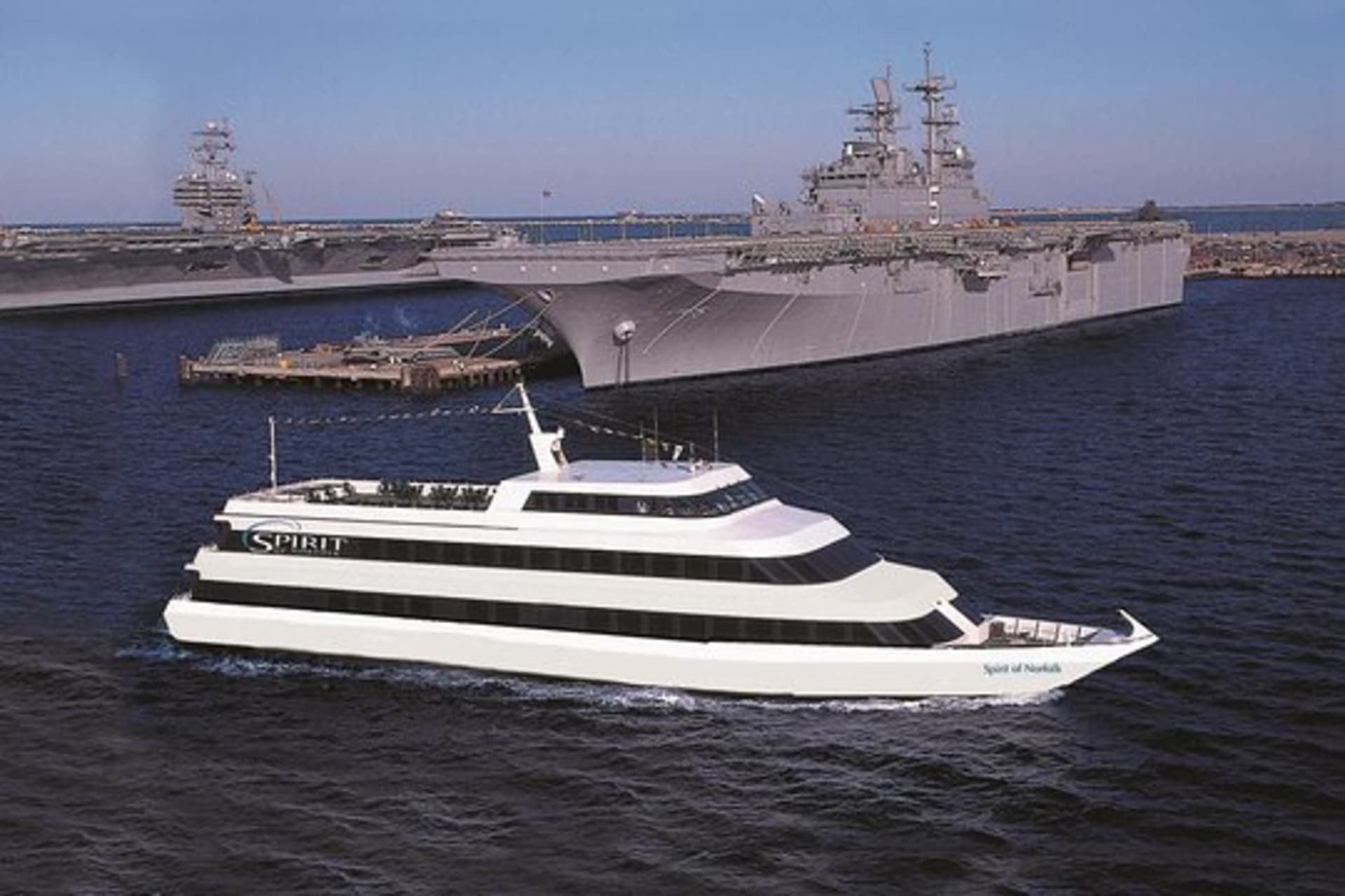 Enjoy an escape on the water aboard Spirit of Norfolk cruise ships! Treat yourself to a night out with a delicious attended buffet dinner, exceptional service, curated music, and interactive outdoor games, all while you catch spectacular views of the mighty ships and submarines of the Navy's Atlantic Fleet from our sky line deck.