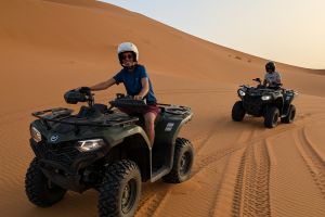 On the second day, the journey takes you to the spectacular Todra Gorges, a natural canyon with cliffs rising up to 300 meters. After exploring, you will continue to Merzouga, the gateway to the Sahara. Here, camels will take you into the golden dunes of Erg Chebbi. You will watch the sunset, try sandboarding if you like, and stay overnight in a desert camp. The evening includes a delicious dinner, Berber music, and stargazing under the clear desert sky.