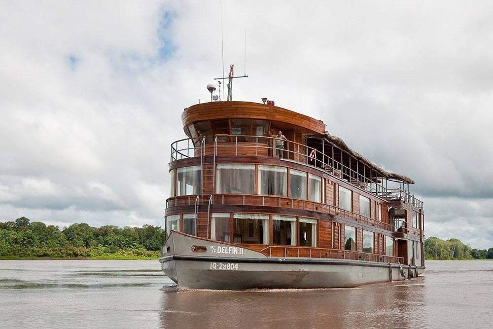 Embark on a 4-day luxury cruise through Peru's Amazon, exploring diverse wildlife, indigenous cultures, and pristine rainforests aboard the Delfin II.