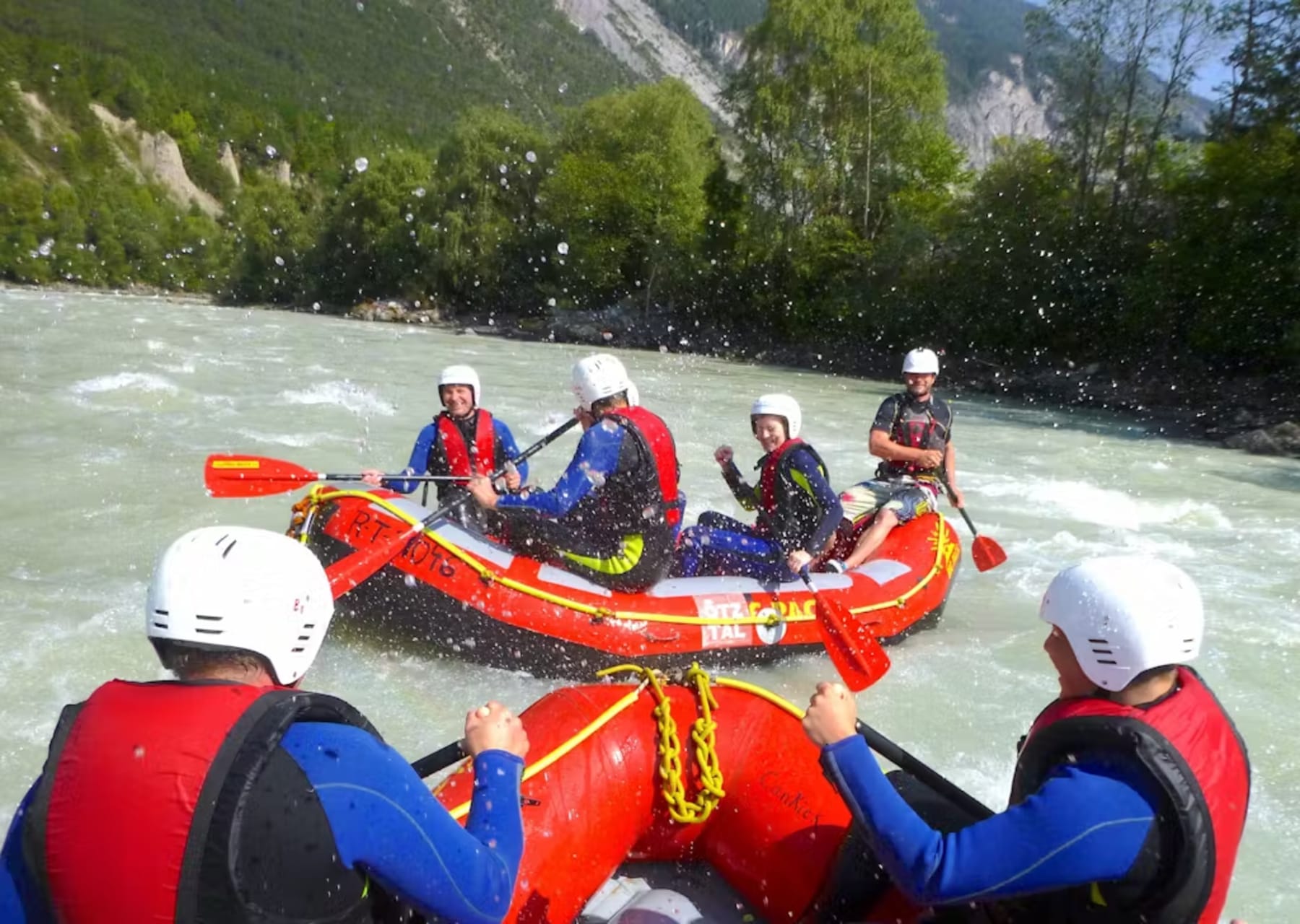 Our action rafting in the Imster Schlucht with special action rafts is just the thing. Smaller boats and fewer participants per boat get more out of every wave. Furthermore, you will learn how to swim in whitewater and steer a rafting boat the right way.