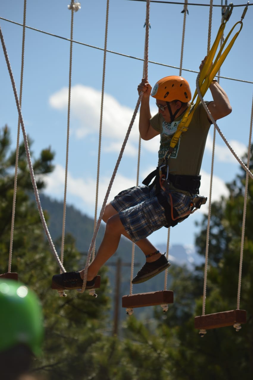 Open Air Adventure Park features an aerial adventure Park with 32 challenges at 10 and 21 feet in the air, the only ax throwing venue near Estes Park and Kayaking adventures in Rocky Mountain National Park.