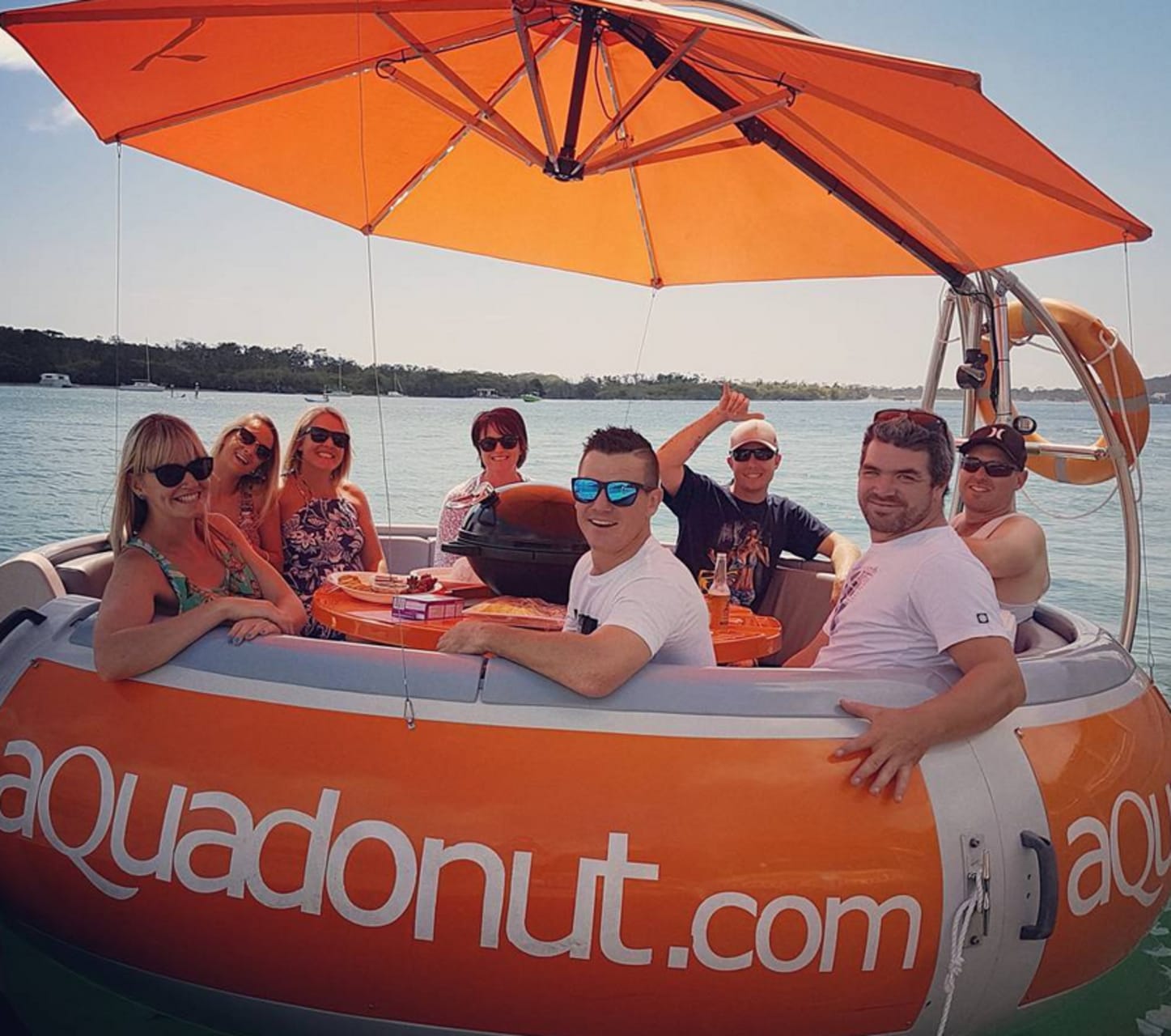 Aqua Donuts are BBQ party hire boats feature a gas BBQ surrounded by seating for up to 10 people with a canopy to protect you from the sun. Fast, easy and fun to use, they are also convenient and space-saving. They can be towed behind a boat or can be anchored as a stationary bbq hire option. Aqua Donuts are BBQ party hire boats feature a gas BBQ surrounded by seating for up to 10 people with a canopy to protect you from the sun. Fast, easy and fun to use, they are also convenient and space-saving. They can be towed behind a boat or can be anchored as a stationary bbq hire option.