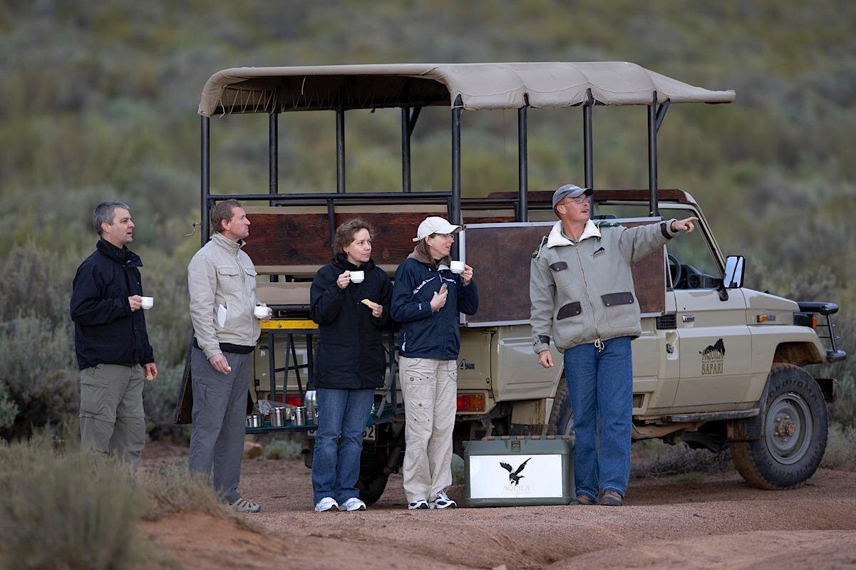 Experience an unforgettable day at Aquila Game Reserve, just a short drive from Cape Town, where you'll embark on a guided safari to witness Africa's iconic wildlife in their natural habitat, complemented by a hearty buffet lunch.