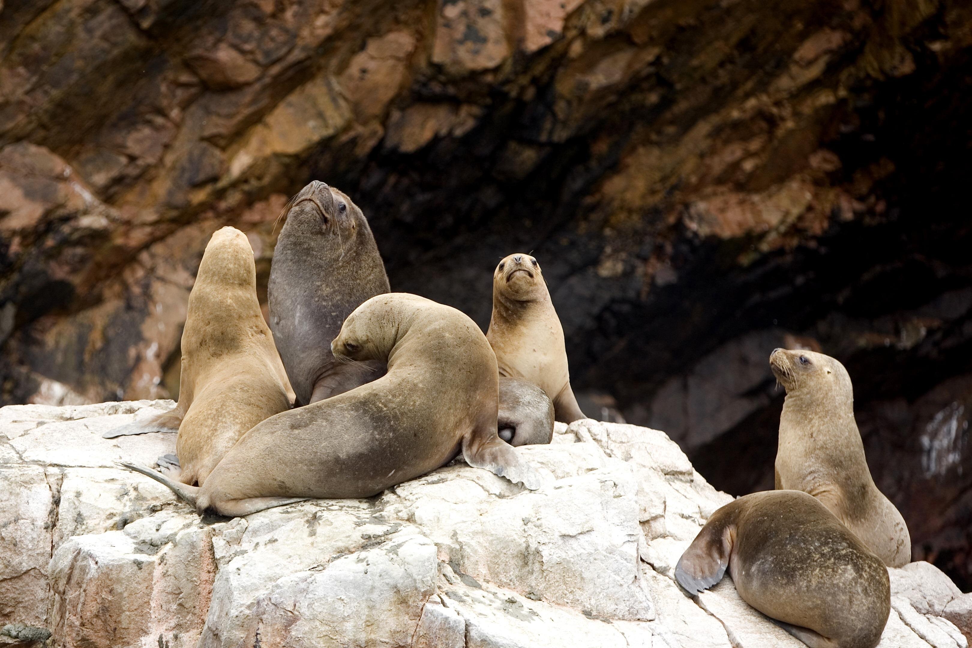 - Spot sea lions basking on the rocks