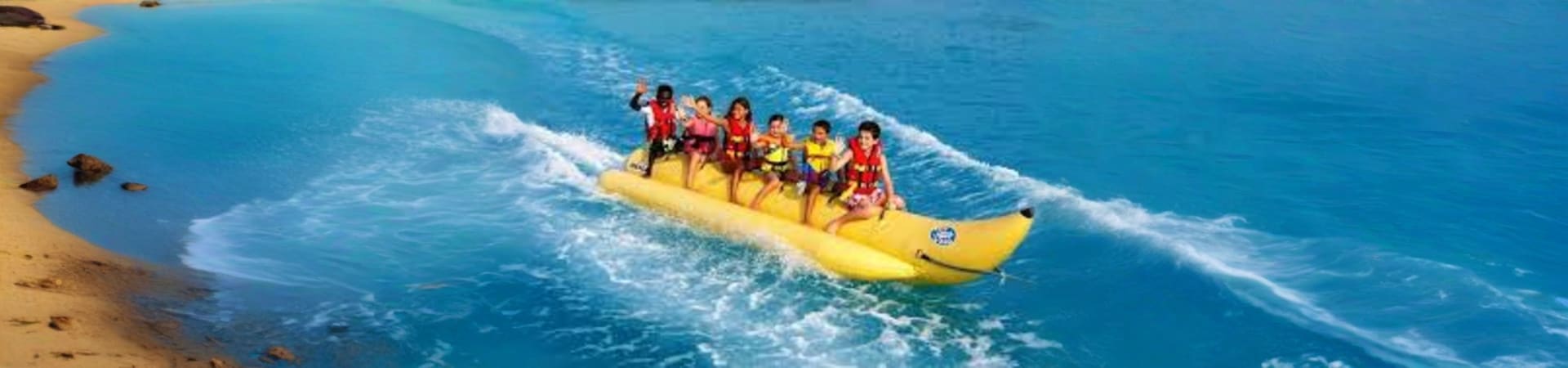 Thrill and Excitement Brace yourself for thrilling twists, turns, and sudden accelerations as the banana boat whizzes through the waves. Clutch the boat tight as it sways and swerves, providing a high-energy and exhilarating ride. A fun warning: be prepared for occasional splashes.