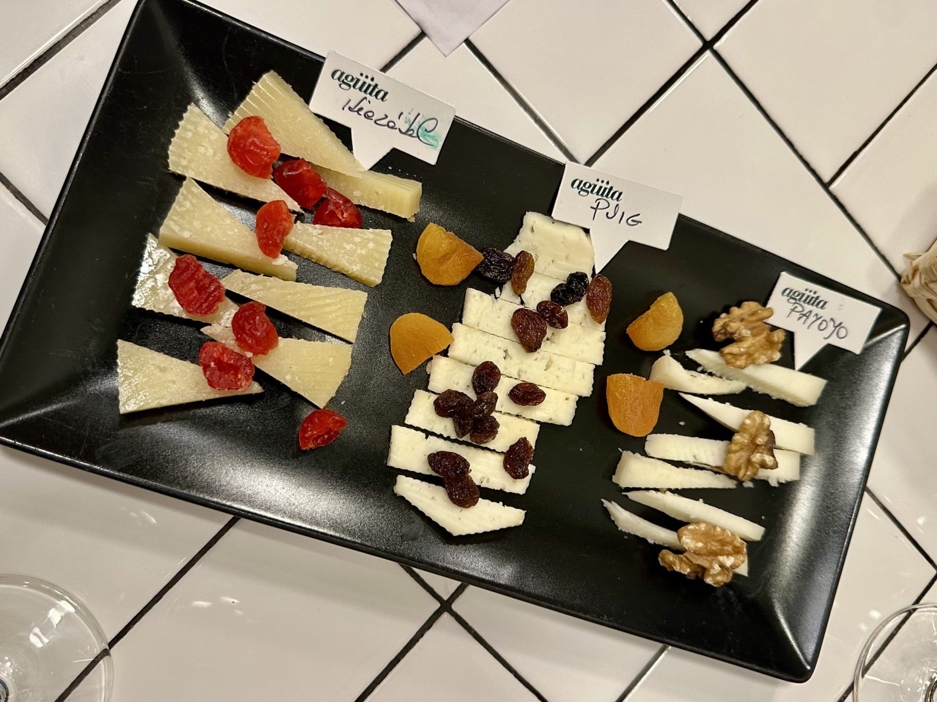 - Food pairings: three artisanal Spanish cheeses with crackers