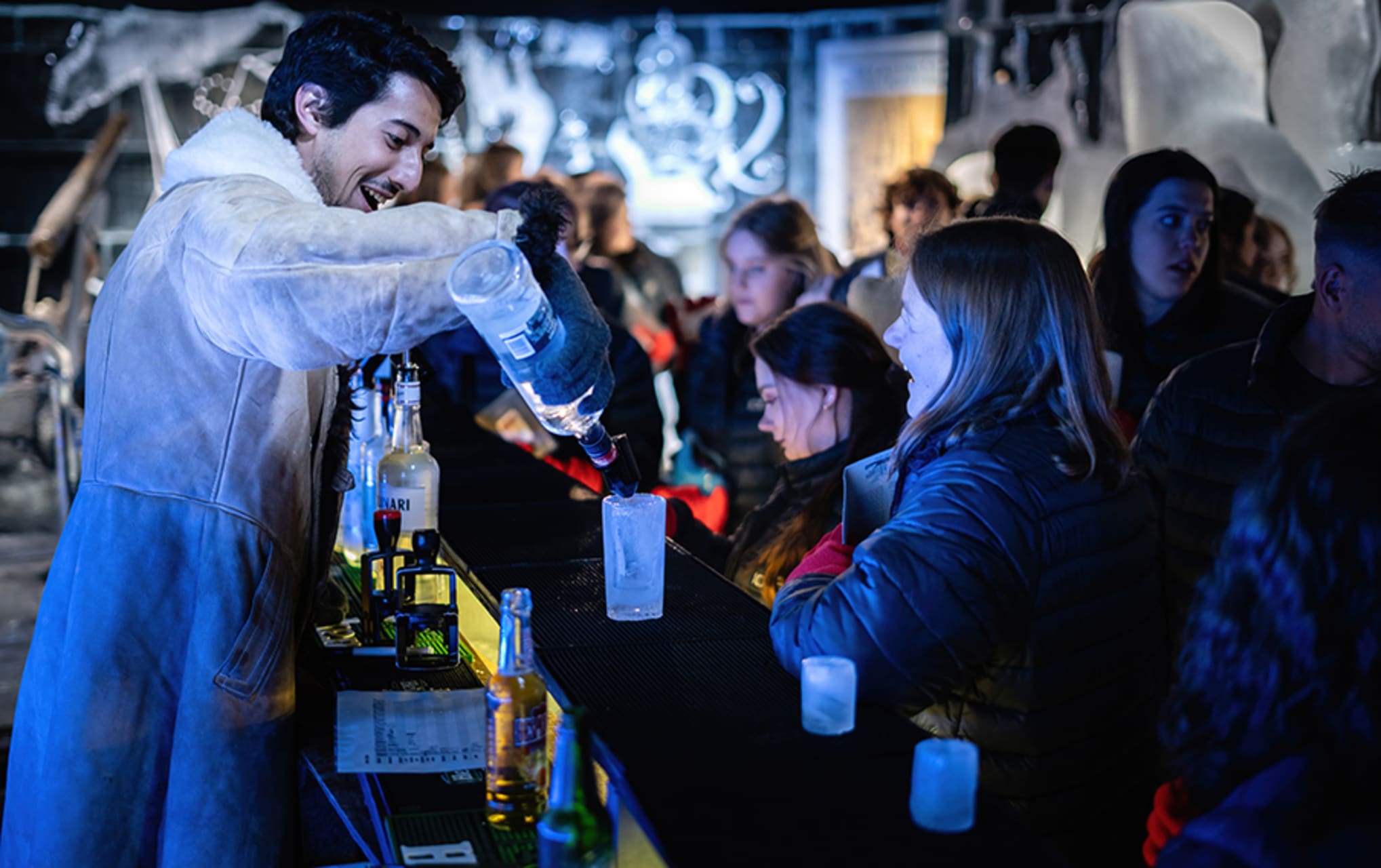 When you are armed against the cold with a warm jacket and gloves, you’ll enter the actual icebar. As the ship gets stuck in the ice it is time to abandon ship and step into the icy world of the Arctic. Enjoy two more included drinks, this time from glasses made of ice, while you try to stay warm.