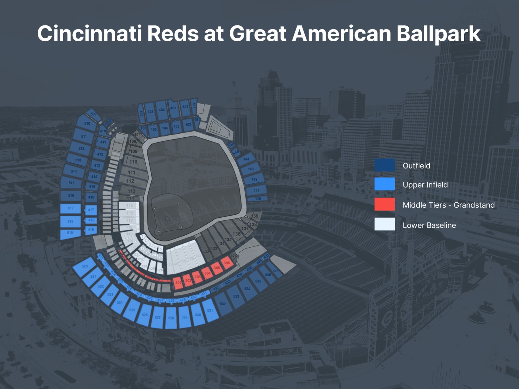 Seeing the Cincinnati Reds play a baseball game at Great American Ballpark is an experience like no other. Enjoy assigned seating with your game ticket and be there live to see the thrilling action on the mound as the biggest stars in Major League Baseball put on a show you'll never forget. Great American Ball Park in Cincinnati is recognized for its picturesque setting along the Ohio River and the "Roebling Suspension Bridge" views from the stadium. Home to the Cincinnati Reds, the ballpark's modern amenities and family-friendly features make it a popular destination. With a wide range of concessions, facilities and matchday entertainment on hand, whether you're a solo traveller, or attending with friends and loved ones, a trip to the ballgame to see the Cincinnati Reds is an experience not to be missed!