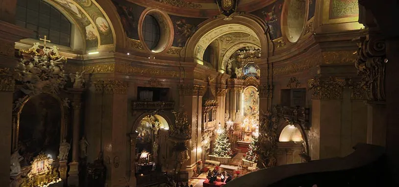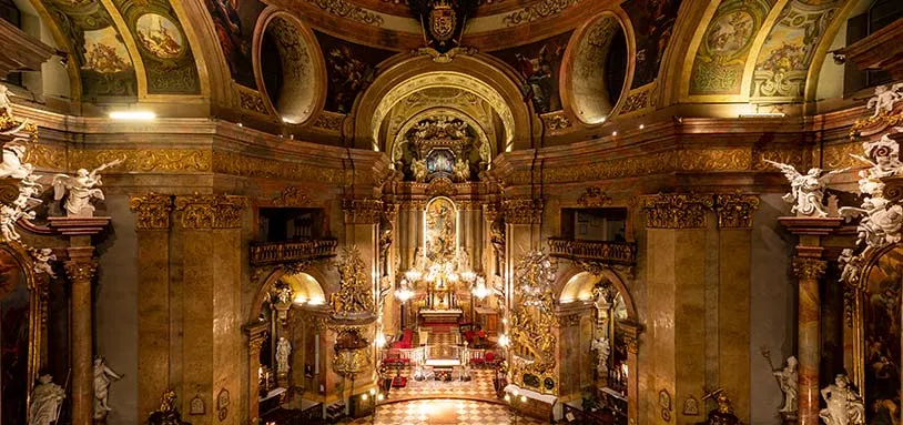 Travel back in time with the Classic Ensemble Vienna. The Ensemble will perform works by Mozart, Vivaldi, Bach, Beethoven, and Schubert in magnificent acoustics of the beautiful Peterskirche in the heart of Vienna. The Classic Ensemble Vienna has found its home at the splendid St. Peter Church, one of the most beautiful Baroque churches in Vienna, built from the year 1701 to 1733 based on the plans of Lukas von Hildebrand. It was here, in the fourth century under the Roman empire that the first church was built in Vindobona, now Vienna. The ensemble performs in the unique atmosphere of the crypt below the main sanctuary.