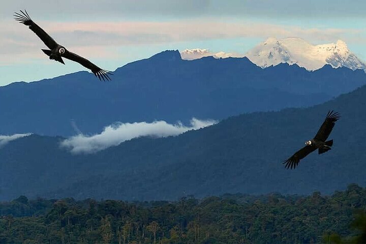 Antisana tour: Depart from Quito for a breathtaking journey through Andean landscapes. In Antisana Reserve, guided hikes explore diverse flora and fauna. Condor watching is the highlight, with knowledgeable guides identifying strategic locations for observing majestic flights and providing insights into their habits. Other bird sightings include hawks, eagles, Andean ducks, and high-altitude gulls. Mammals like deer, rabbits, and vicuñas may be spotted. Participants enjoy pristine mountain landscapes, lagoons, and glaciers. Some tours include visits to reflective lagoons, emphasizing environmental awareness and the need to conserve these unique ecosystems.