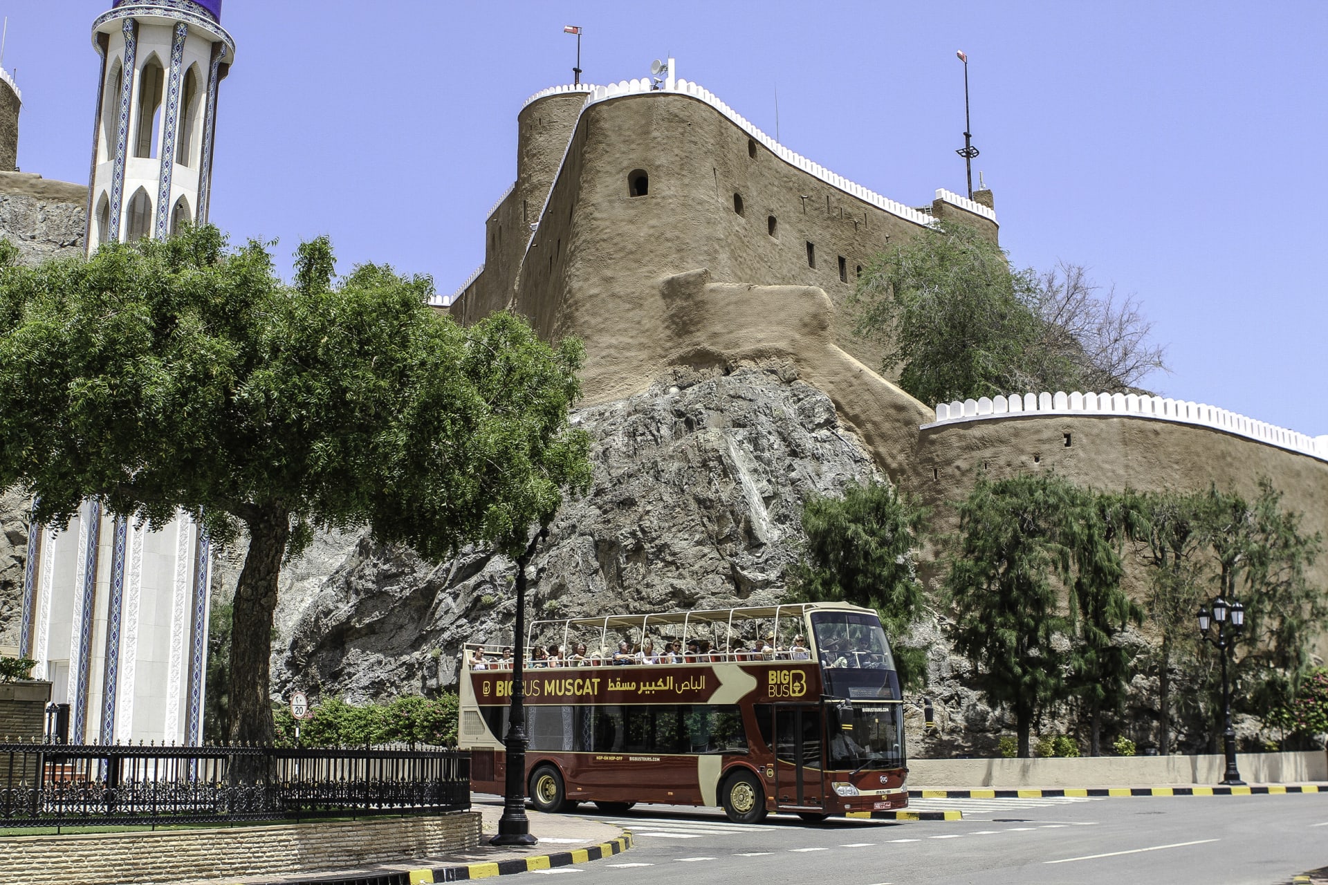 Experience the unique delights of Muscat with complete ease and comfort on the Big Bus Muscat - Discover Ticket. With 8 different stops along the route, you can conveniently hop on and off the bus to discover Muscat's top sights and landmarks. As you sit on the bus, enjoy 360-degree views of the city's iconic attractions. Choose to sit inside the air-conditioned lower level for a comfortable ride or head upstairs to the open-top deck for the best sightseeing opportunities.