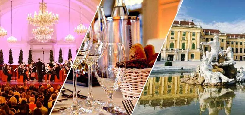 Enjoy all the delights of Vienna with a full program of dining and cultural entertainment at the Schönbrunn Palace!Begin with an eye-opening tour of the Schönbrunn Palace, visiting the private and official rooms of the imperial summer residence. Following the tour, dine like royalty at a restaurant within walking distance to the palace area. After the meal, a concert evening awaits you, with the most celebrated works of Wolfgang Amadeus Mozart and Johann Strauss, performed at the Orangerie Schönbrunn or one of the palace's other festive halls. A variable selection of musical works from the repertoire below will be performed