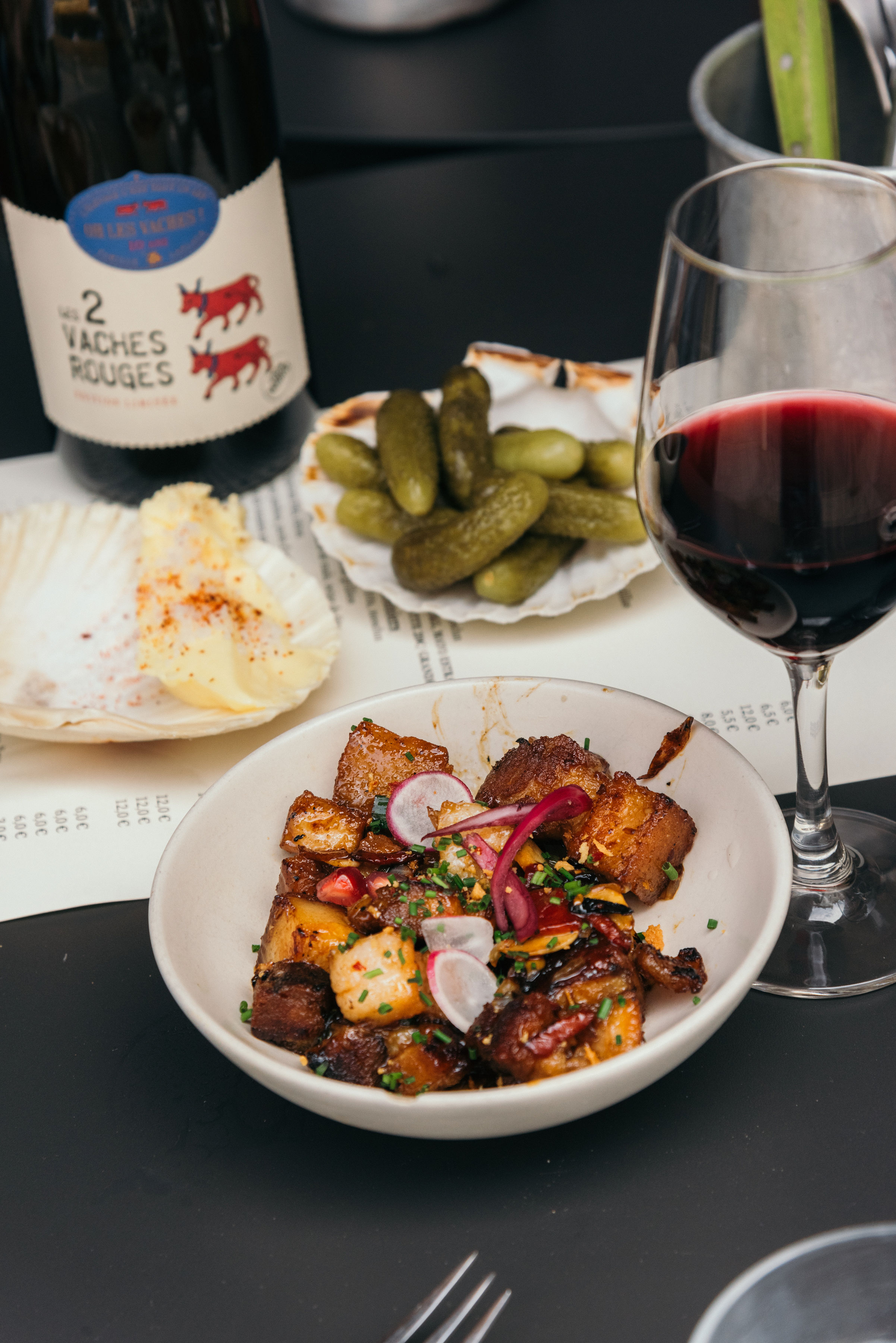 - Caramelized pork belly or Quiche Lorraine