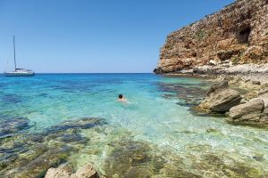 Our skipper will guide you to discover the Egadi Islands, following the wind’s breath. Live a unique experience between secret caves, inaccessible bays and uncountable shades of blue.. Left the mooring and hoisted the sail, your sailing experience can begin. The boat sails to Favignana with stops at Cala Azzurra, Bue marino, Cala Rossa. The navigation continues to Levanzo, where stops at the most famous bays of the Island as Cala Fredda and Cala Minnola. During the stops you can swim and use the snorkeling equipment available on board. The sail boat provides every comfort to spend a daily tour in total relax.