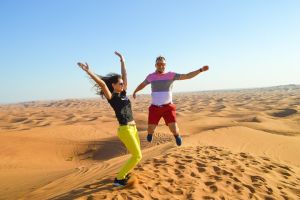 Camel ride, visit of camel farm, Breakfast with Arabic coffee and dates, photo stop, and sandboarding.