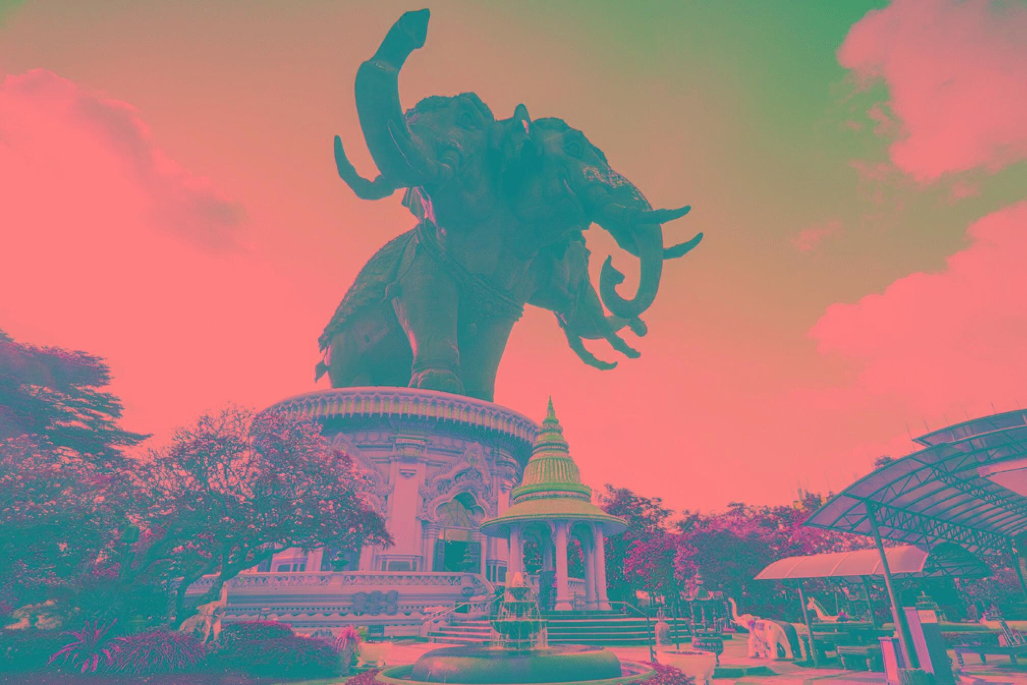 - See the giant three-headed elephant statue