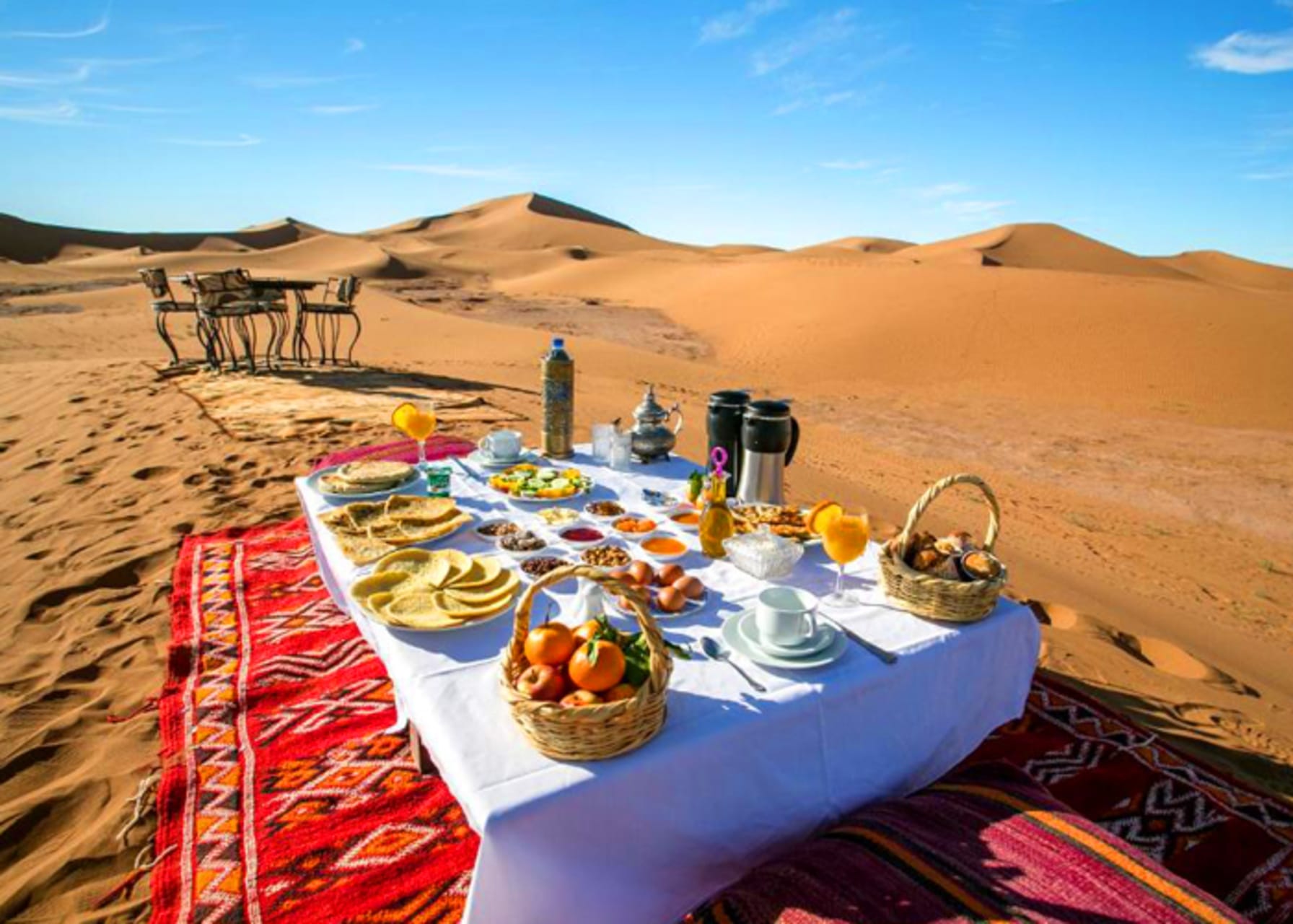 • on After a long sleep from day one, you'll have to want to wake up early to enjoy the beauty of how the sun rises on the dunes, and go on a ride on camelback to your hotel where you'll have a breakfast, and some time to refresh until you have to leave once again Fes, going through Ziz Valley and the Middle Atlas mountains, passing through Azrou's cedar forest, your next stop would be Ifrane to spend the rest of the day until you get back to Fes.