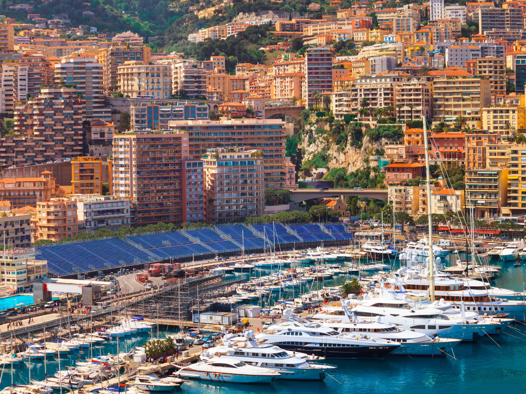 Grandstand T: SATURDAY AND SUNDAY PASS. This main grandstand is ideally located in the Monaco Harbour in front of the pit-lane Spectators will have great views of the straight section after the exit of the last right / left `S` of the Swimming Pool Complex. Please note that from the lower rows you won`t be able to see into the pitlane.