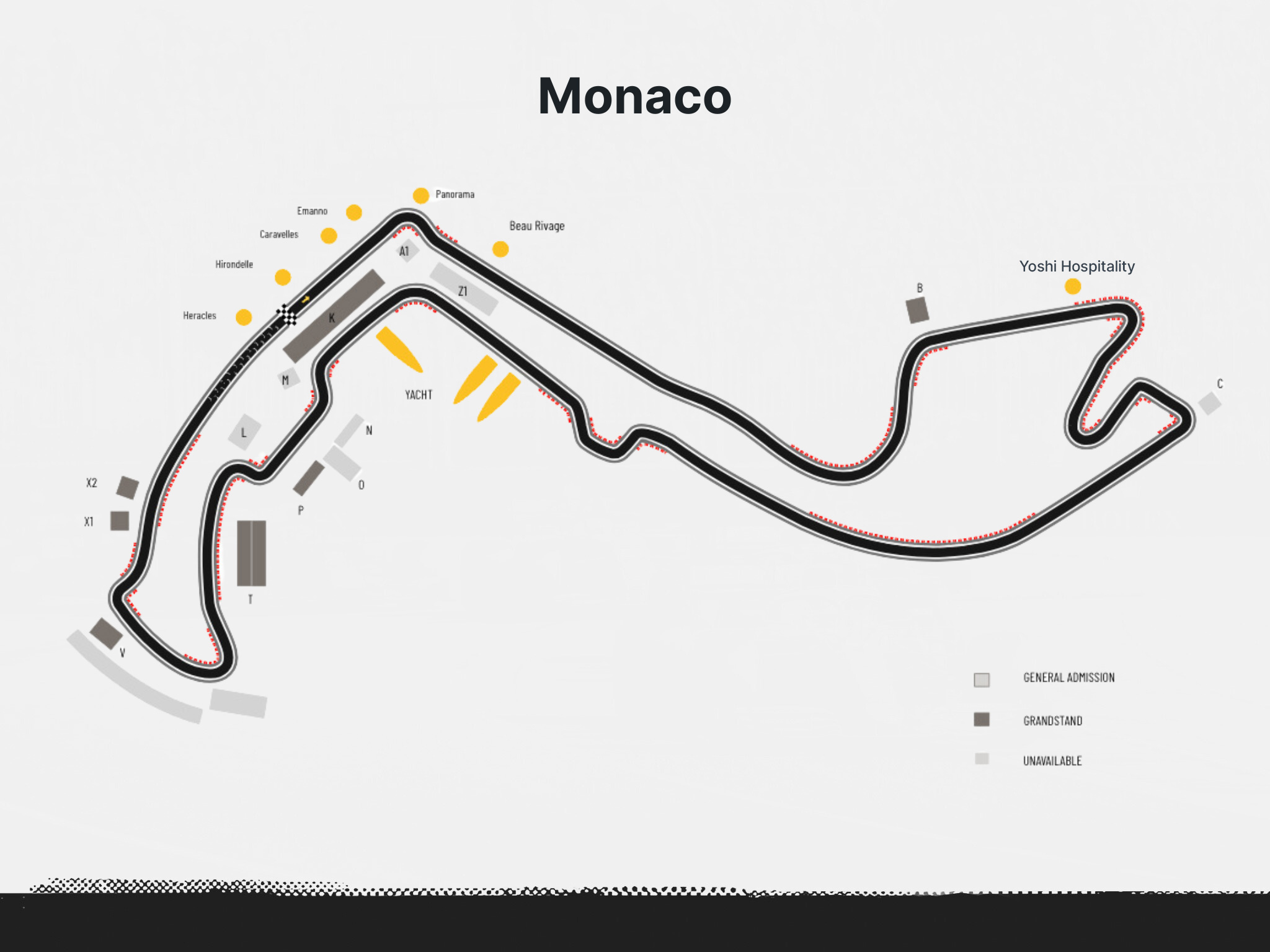 Grandstand T (Sa-Su) + Heracles Rooftop (Fri): 3 DAY PASS (FRIDAY - SUNDAY) Friday: Take in the breathtaking views of Monaco while you indulge in premium hospitality including specially curated menus served throughout the day and free-flowing beverages at an open bar with sparkling wine, beer, wine and soft drinks. This 5th-floor rooftop terrace is situated to the left of the F1® Podium with views of the Starting Grid and Pit Lane exit, along with a prime vantage point to overlook the famous swimming pool, Port de Monaco & more! Saturday & Sunday: Grandstand T Seating - Uncovered grandstand located between Turns 16 and 17 with one of the best views around Circuit de Monaco, including into the Pit Lane.