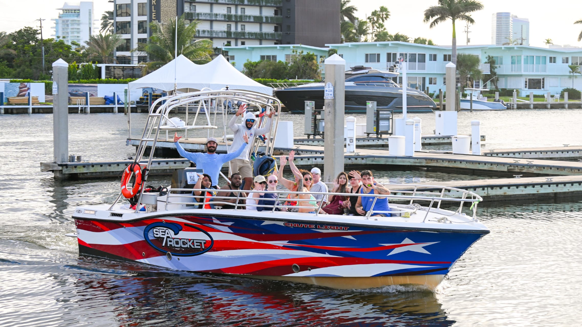- We meet at Bahia Mar Resort & Marina, located at 801 Seabreeze Blvd, Fort Lauderdale, FL 33316. Head to A Dock (by Marina Village)—look for the red, white, and blue boat behind the the Sushi Song food kiosk. Plenty of paid parking is available onsite (about $10). Arrive 30 minutes early to check in, sign waivers, and board smoothly.