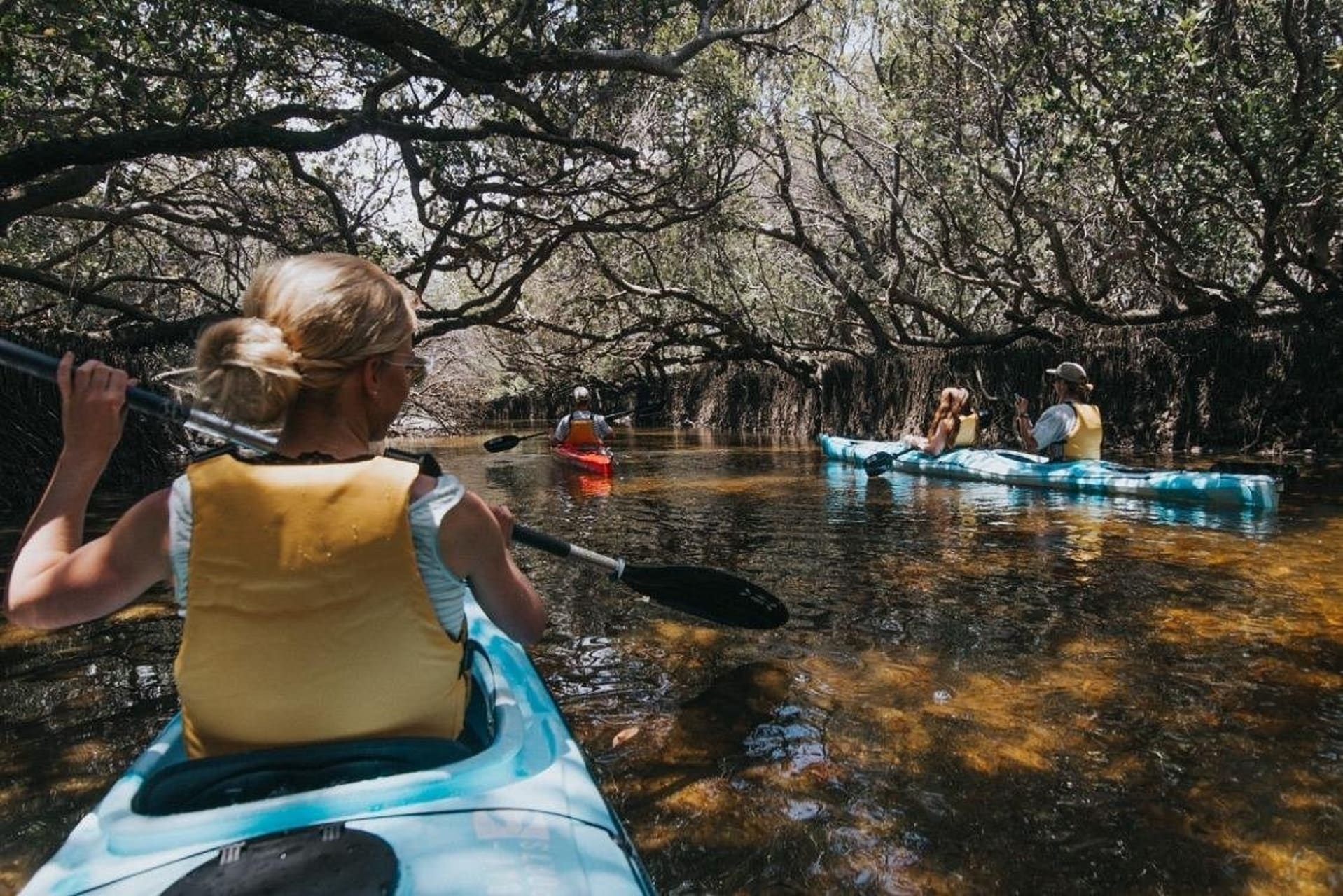 - Paddle mangrove creeks with dolphins.