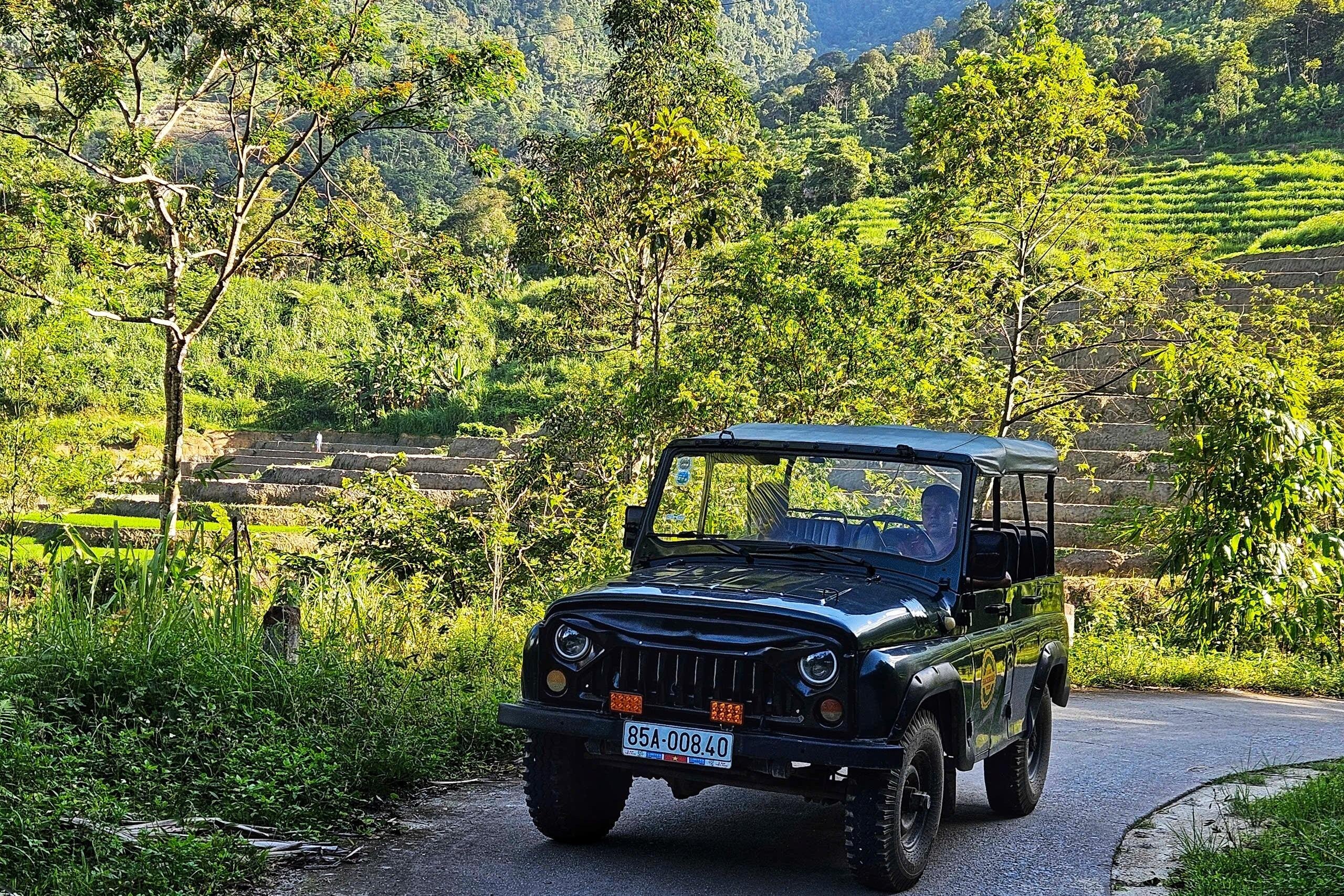 Experience Ha Giang's breathtaking landscapes, including rice terraces and waterfalls, on a guided Jeep tour through the city and countryside.