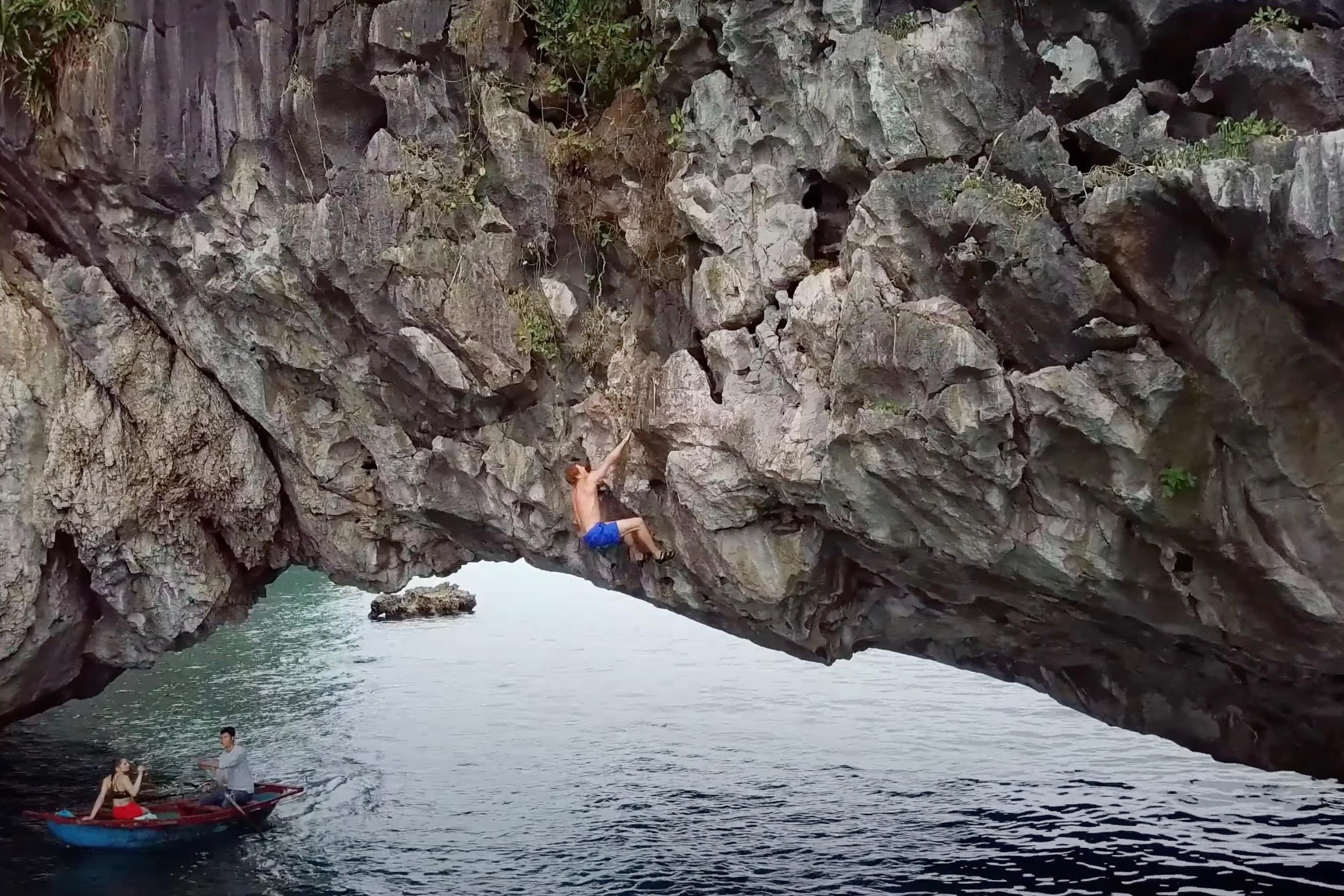 Experience an exhilarating half-day deep water soloing adventure in Lan Ha Bay, Cat Ba Island, Vietnam, including climbing, swimming, and a delightful breakfast.