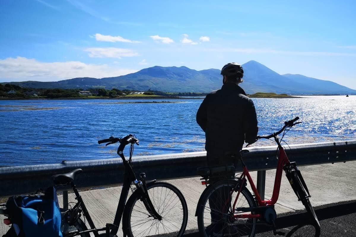 The route is a safe off road cycle track 43 km. ( 27 miles) from Westport to Achill Island on the wild Atlantic way, it