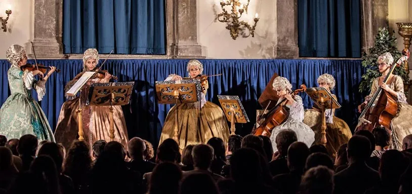 Enjoy Vivaldi's Four Seasons near the world-famous Rialto Bridge in Venice performed in 18th century Venetian costumes!The Four Seasons is Antonio Vivaldi's most famous work. Written in the Baroque era, during the 18th century, it is a set of four violin concertos that represent the seasons of the year. The composer took his inspiration from the countryside around Mantua, where he lived when he wrote the work, including the sounds of flowing creeks and singing birds in his composition. I Musici Veneziani will celebrate 30 years of activity in 2026!!!For the occasion, they have prepared a concert season entirely dedicated to Antonio Vivaldi, where in each show, in addition to performing the famous Four Seasons, soprano, tenor, oboe, and flute will alternate on stage as soloists in an unmissable Baroque first part.Established in 1996 with the aim of recreating the artistic tradition of the Republica Serenissimas most splendid period, the I Musici Veneziani Orchestra, is formed of some of the most skillful Venetian musicians and singers.It is still the only classical orchestra in the world where the musicians wear baroque style dresses created from original designs.