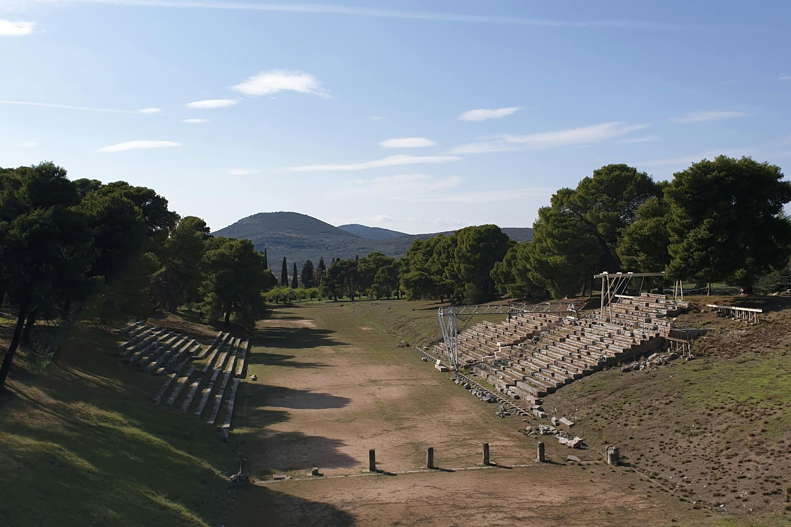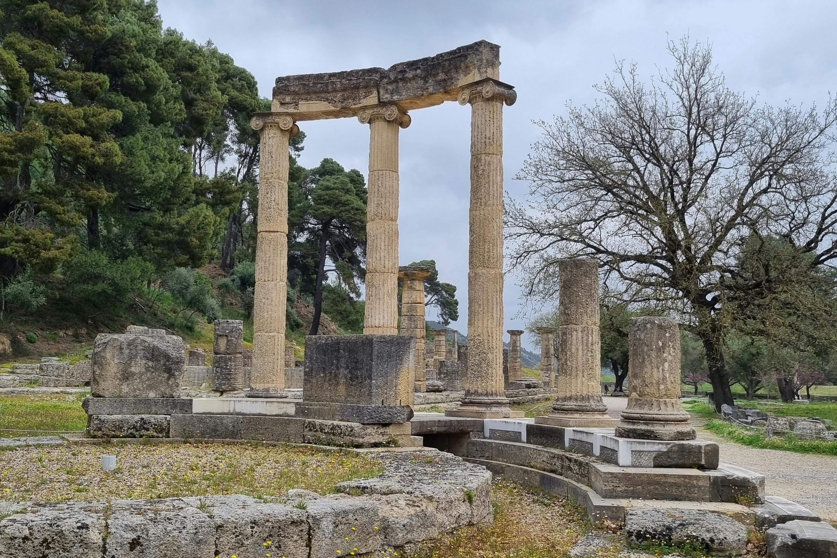 Admire the Gymnasium, the Palaestra, the temple of Zeus, the temple of Hera, Heras altar, and the ancient stadium of Olympia from the outside.