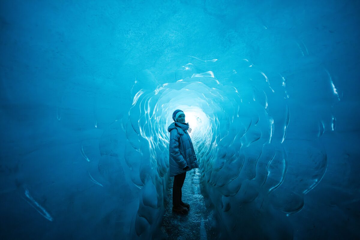 - Walk inside a natural black-and-blue ice cave