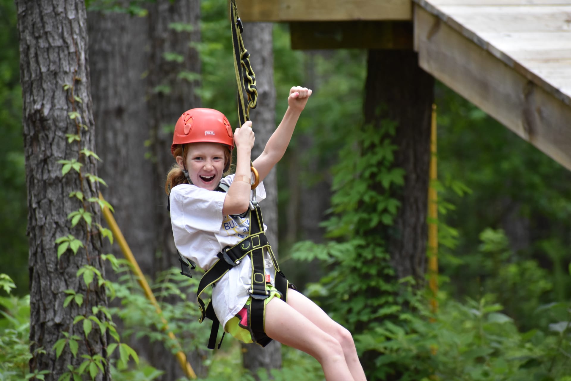 Let the kids ZIP and PLAY on our Koala Kid Zip! Charleston Adventure Forest is set on 10 acres of forest in Awendaw, South Carolina, located just 15 miles from Historic Downtown Charleston. As the only ziplining experience in Charleston, we are so excited to be bringing this unique and exhilarating adventure to the children of the Lowcountry. Our kids zip course is specifically designed for our younger adventurers, ages 5-12. Whether your child is zipping for the first time or for the hundredth time, there is truly something for all experience levels on our TWO different zipline circuits. The Kids Zip ranges in height from ground level to 25 feet, with one circuit for beginners and a second, more advanced one for more experienced zippers. This makes it easy for your young adventurers to comfortably choose whether they want to test the waters a bit first or step right up to the challenge! Our course is set on a continuous belay trolley, which means they never have to transfer their own trolley. Once they clip in, they stay on until they reach the end of the course, whether that’s on our lower line or the higher one! This also allows the kids to switch between the two circuits freely!