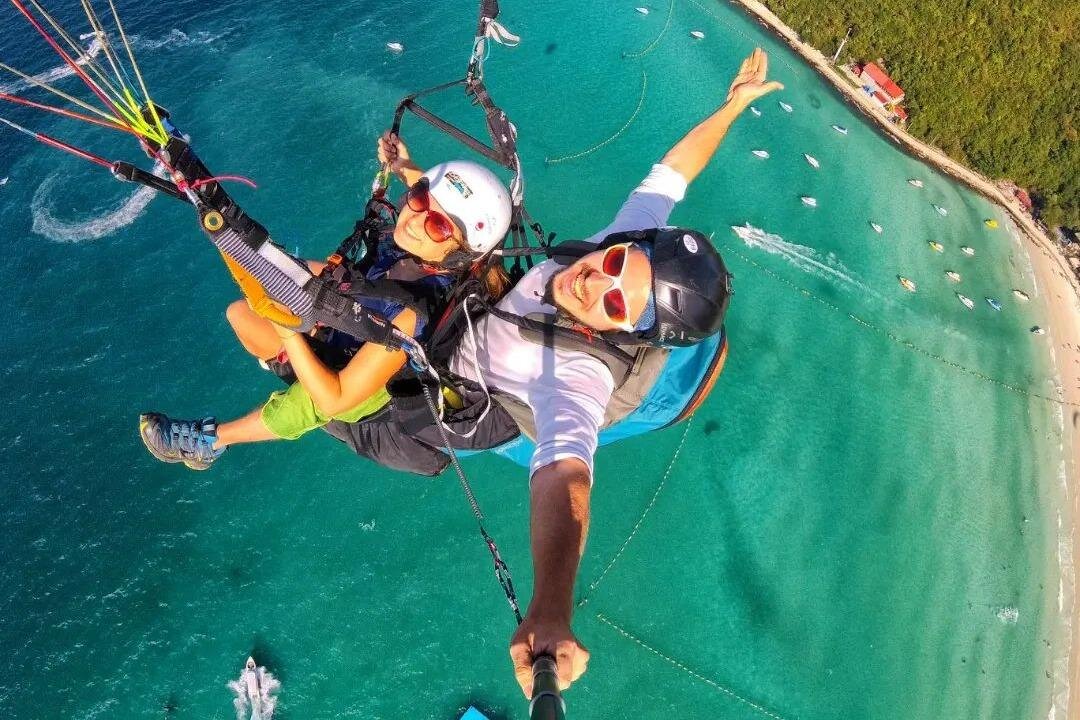 Experience the thrill of tandem paragliding over Koh Larn's stunning scenery in Pattaya, guided by expert pilots for an unforgettable adventure.