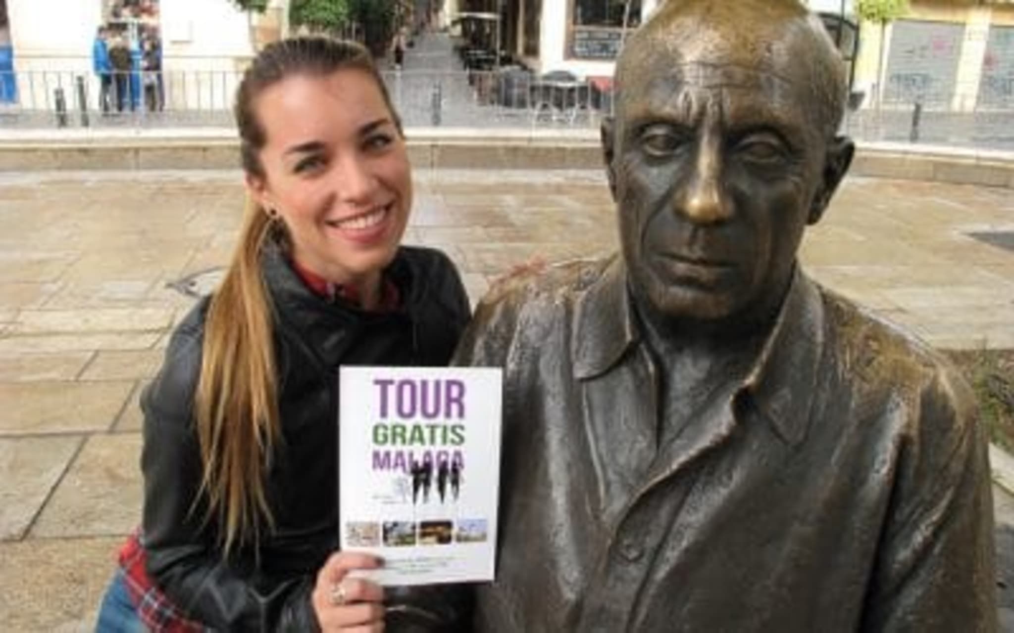 - Our guide will be waiting for you next to the statue of Picasso and will carry a white and blue umbrella with our logo