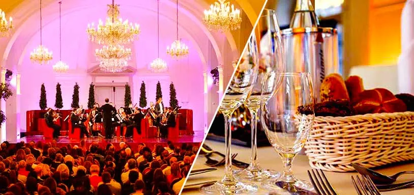 Enjoy this exquisite event at Schönbrunn Palace in the historic city of Vienna and indulge in music by Mozart and Strauss in the unique atmosphere of the breathtaking baroque palace after a delicious 3-course meal. The first part of the concert features some of the most marvelous overtures, arias, and duets from the operas by Wolfgang Amadeus Mozart, including 'Le Nozze di Figaro', 'Die Zauberflöte' and 'Don Giovanni'. Popular operetta arias, waltzes, and polkas by the 'Waltz King', Johann Strauss, comprise the second part of the program. Highlights include excerpts from 'Die Fledermaus', 'Der Zigeunerbaron', the 'Donauwalzer' and the famous 'Radetzkymarsch'. The orchestra is accompanied by two opera singers, a soprano and a baritone. A variable selection of musical works from the repertoire below will be performed