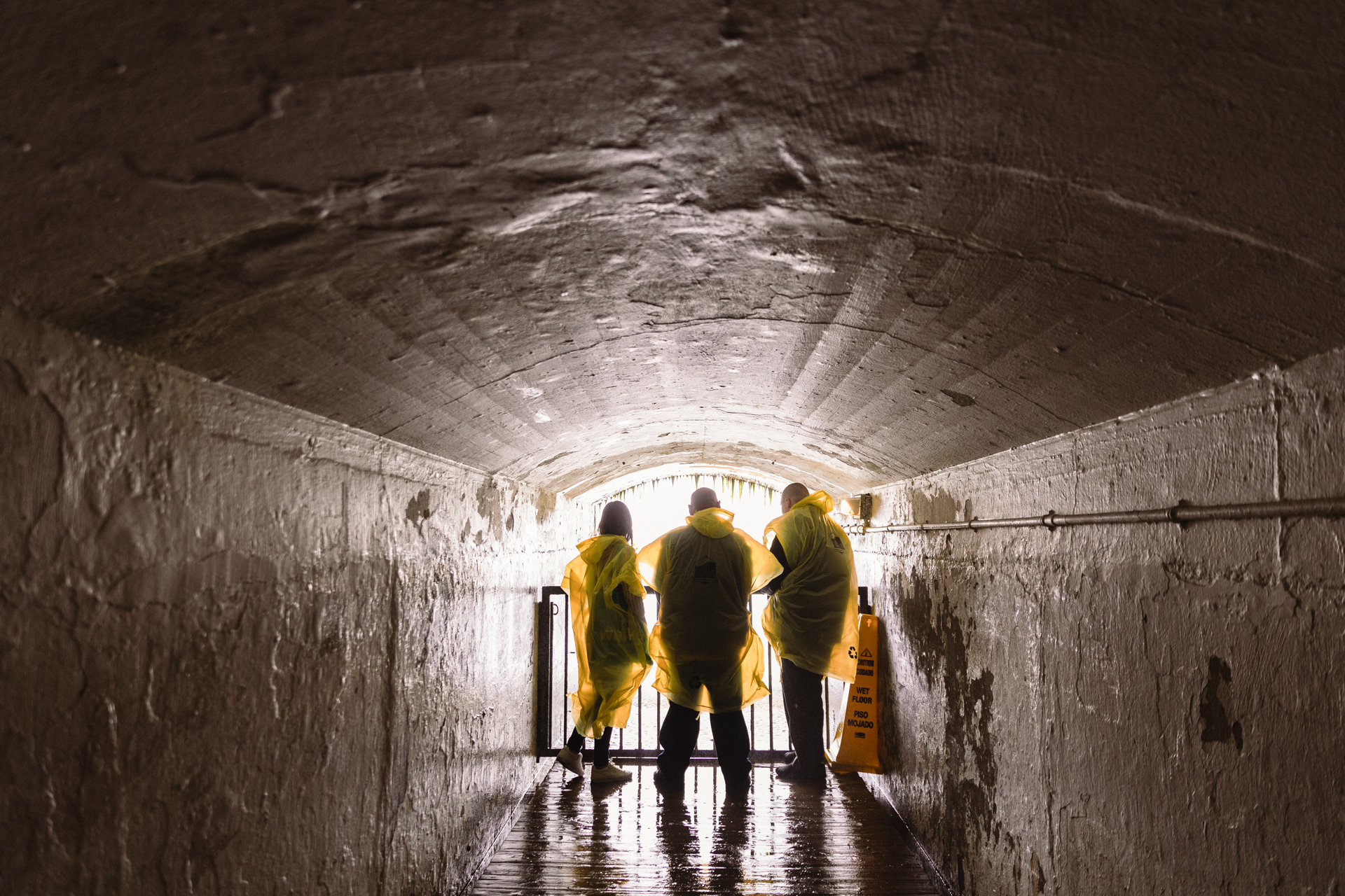 At the end of the tunnels, you’ll step into observation portals cut through the rock, where you can stand directly behind the curtain of water as it thunders past. You’ll also access the lower observation deck (weather permitting), located just steps from the base of the falls. From here, you’ll gain a powerful side perspective of the cascading water and begin to see the illumination transform the falls as night sets in.