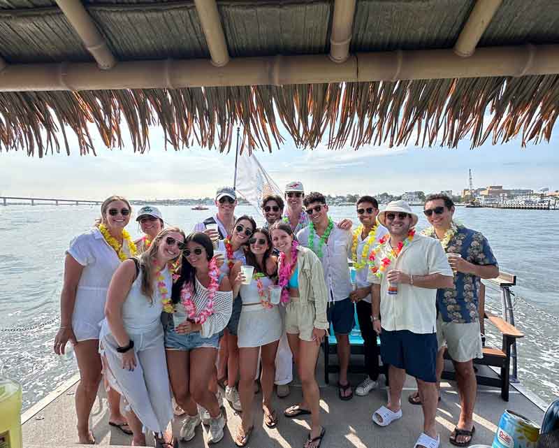 Set sail on the 'No Shoes, No Shirt, No Problem' Tiki Lunch Cruise for a laid-back midday adventure through Ocean City's scenic back bays. This private cruise accommodates up to 16 guests offering a unique and intimate experience. Bring your own lunch or opt for our catering options to enjoy a delightful meal on the water. With comfortable shaded and open-air seating, you can relax, mingle, and soak up the sun while taking in panoramic views of the bay. The easy Bluetooth connection allows you to play your favorite tunes, enhancing the island vibes. A professional Captain and Mate are on board to ensure a smooth and enjoyable journey, so you can focus on creating lasting memories with your group. Whether you're celebrating a special occasion or simply looking to unwind, this cruise offers a perfect midday escape.