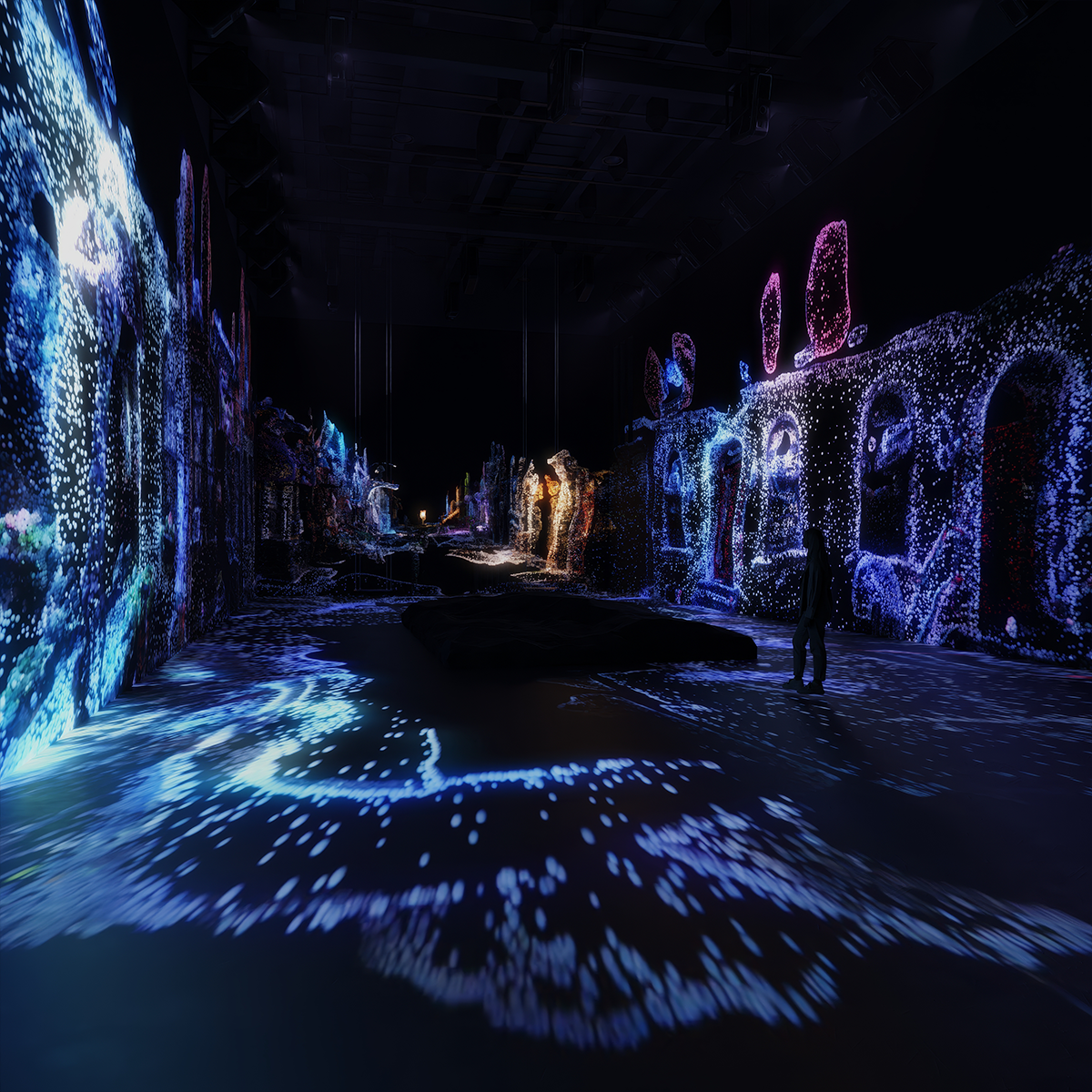 As you move through all three levels of the exhibition, responsive features reveal new dimensions of art, prompting a rethinking of the boundaries between reality and illusion. After Dark explores how technology reshapes our understanding of memory and perception, inviting a deeper, more introspective engagement with the art. In this reflective environment, Creative Director Roy Nachum encourages a discovery of what lies beneath the surface, sparking an enduring sense of reflection.