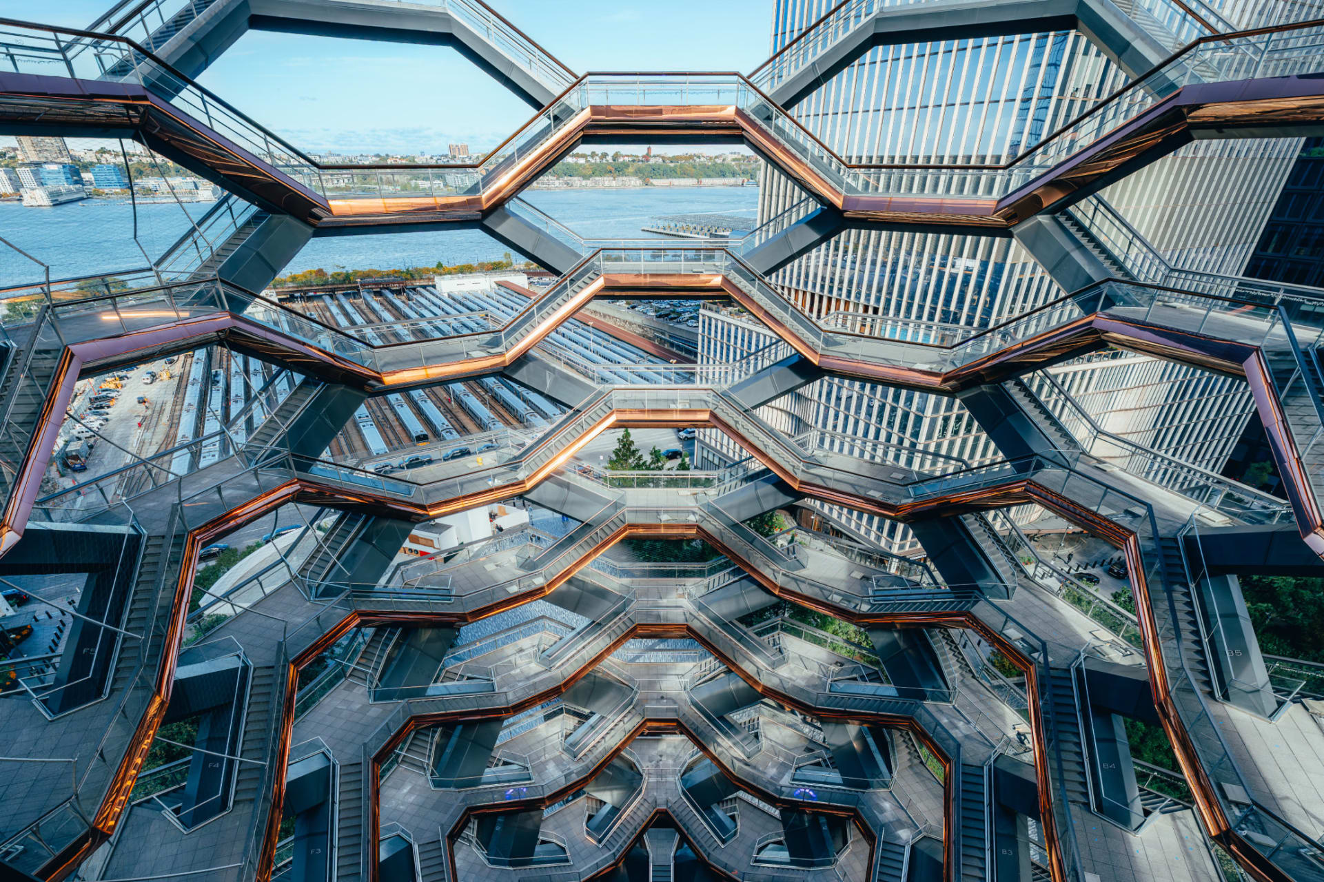 Immerse yourself in an unforgettable journey with the Official Vessel General Admission ticket, granting you one-of-a-kind access to one of New York City's most breathtaking landmarks. The Vessel offers a truly unique experience, standing out as an architectural marvel in a city known for its iconic skyline. This structure is unparalleled—a dazzling labyrinth of interconnected staircases and platforms that defies conventional design. As you ascend the gleaming bronze-colored stairways, the Vessel opens up to reveal stunning vistas of New York City, giving you access to views and angles like no other. Each level offers a new perspective, making it a must-see attraction for both locals and tourists.