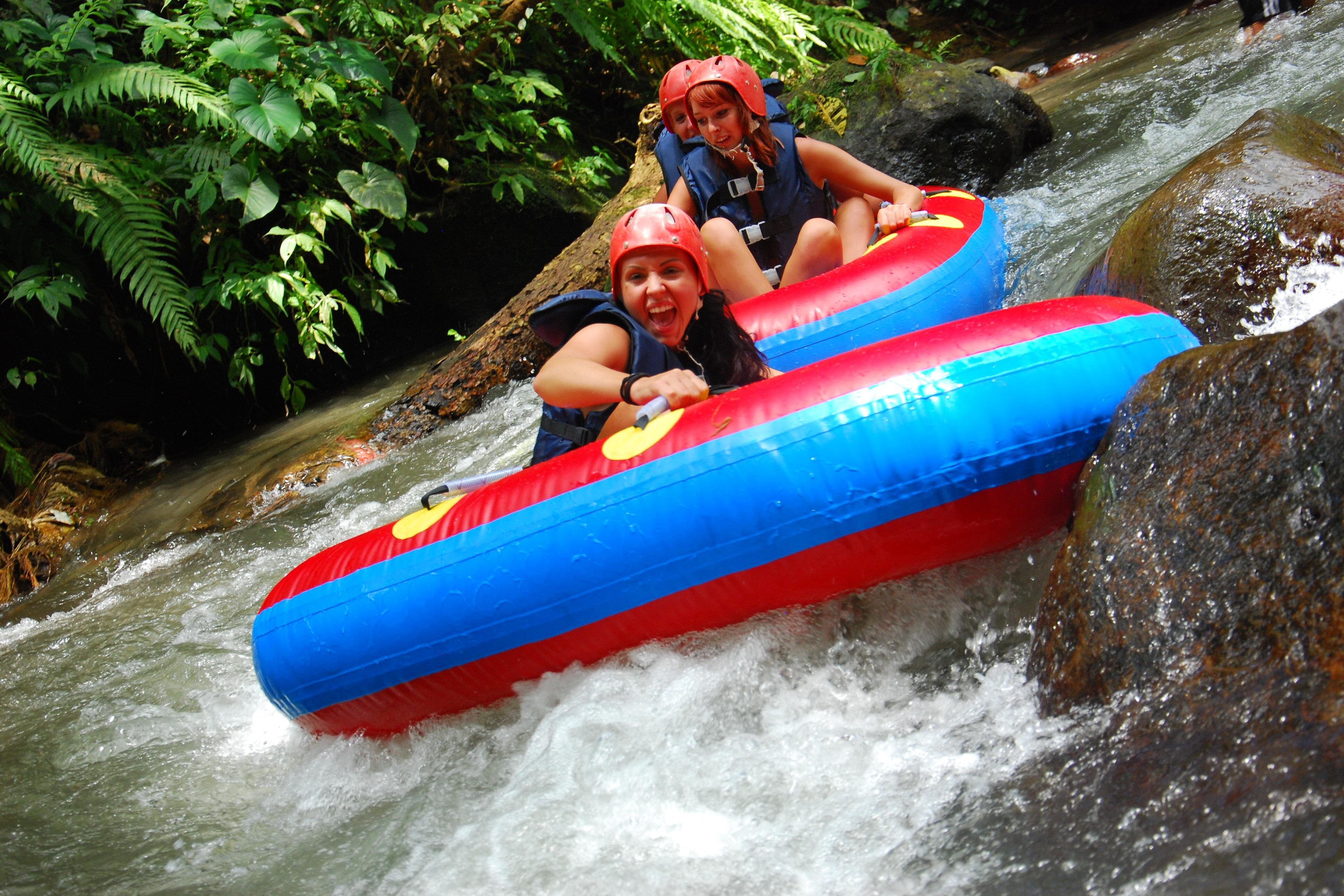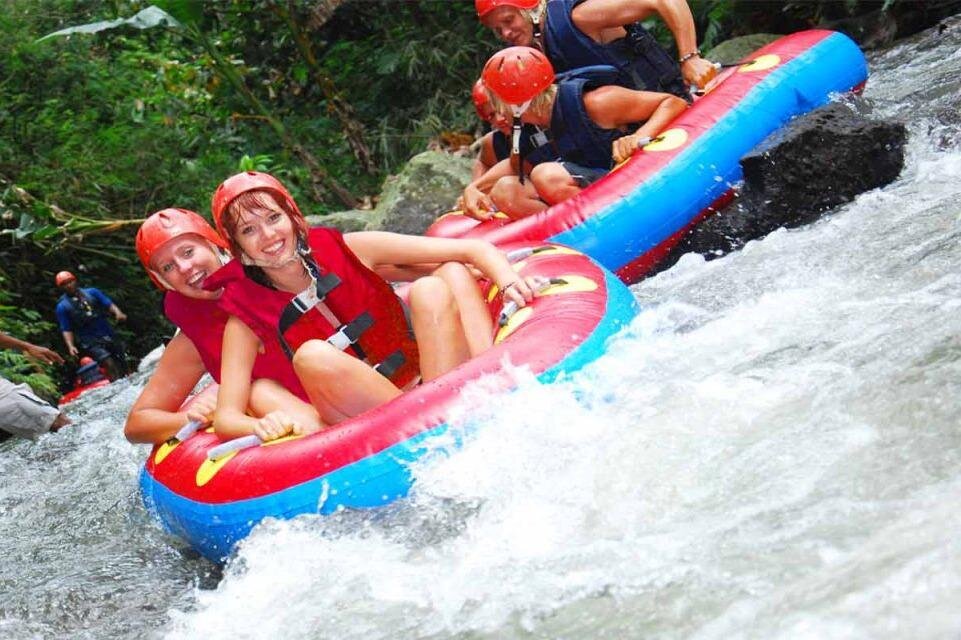 Experience an exhilarating river tubing adventure along the Pakerisan River in Ubud, Bali, complete with hotel transfers and professional guidance.