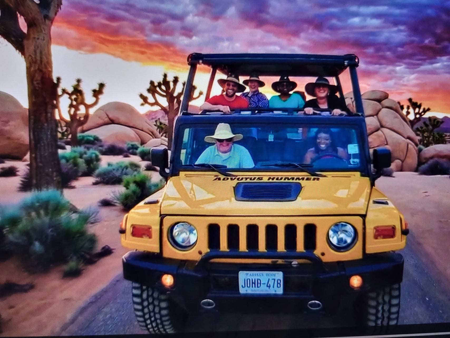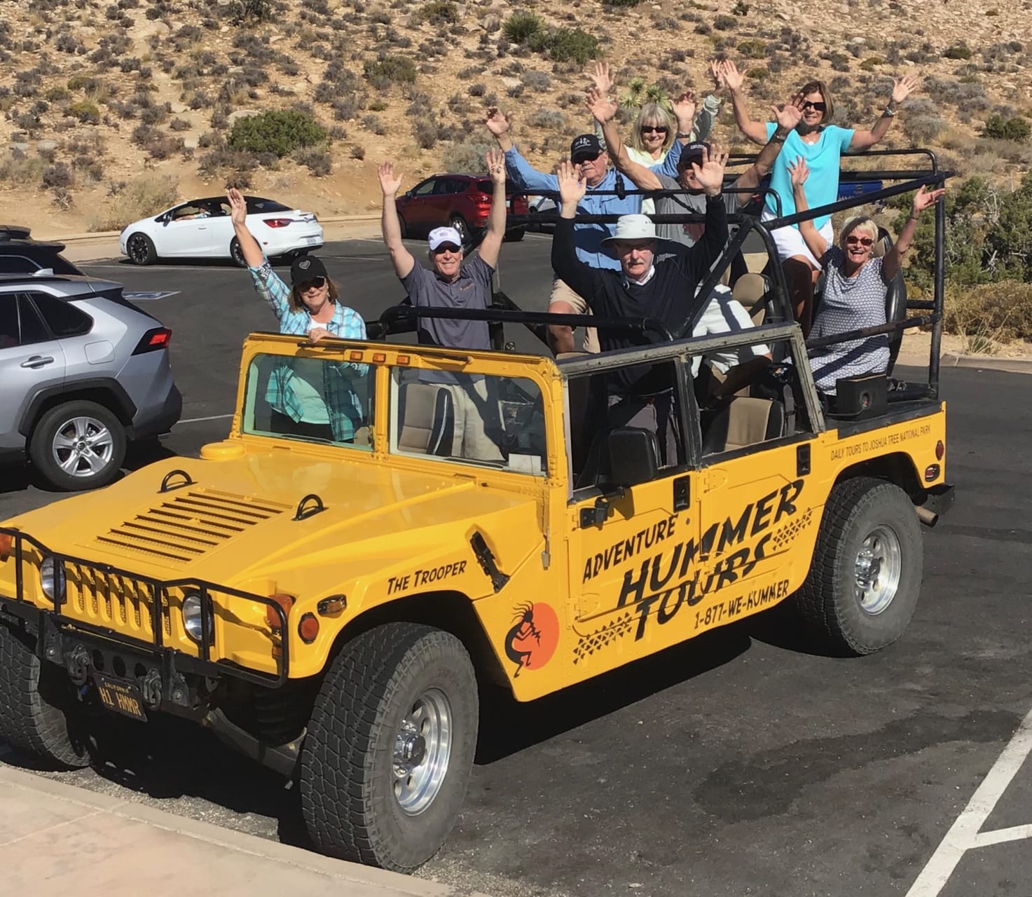 We leave at 8:30 am daily on an air-conditioned shuttle van to take you to our open air Hummer in Joshua Tree. Returns about 1:30 pm