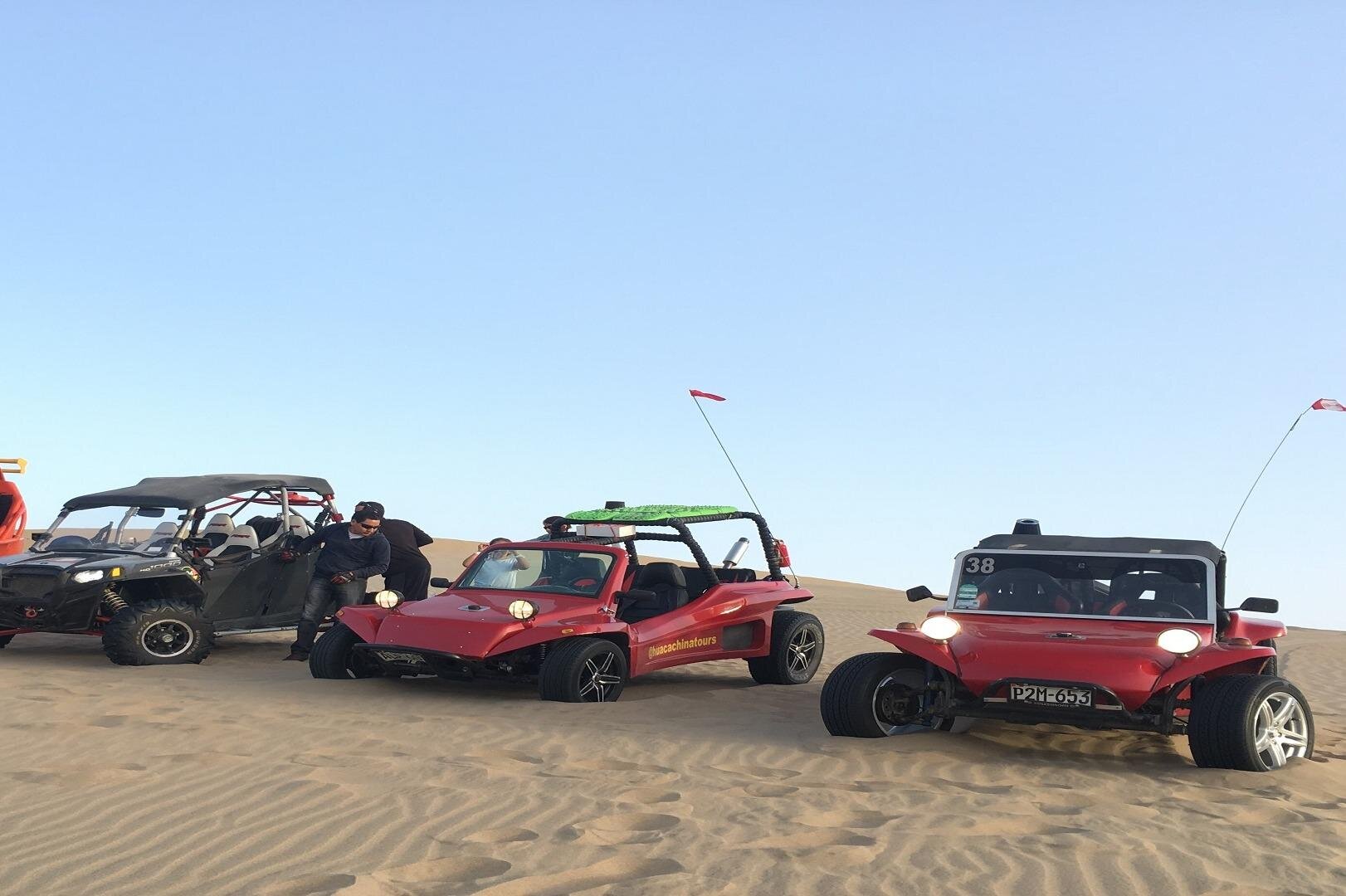 Get ready for an adrenaline-packed adventure in Paracas! Hop into a dune buggy and navigate the vast desert dunes, feeling the rush as you conquer the sandy terrain. Then, grab your sandboard and ride down the slopes, enjoying the thrill of the descent. With expert local guides leading the way and convenient hotel transfers, this experience offers a perfect blend of excitement and convenience. Don't miss out on this unforgettable desert escapade!
