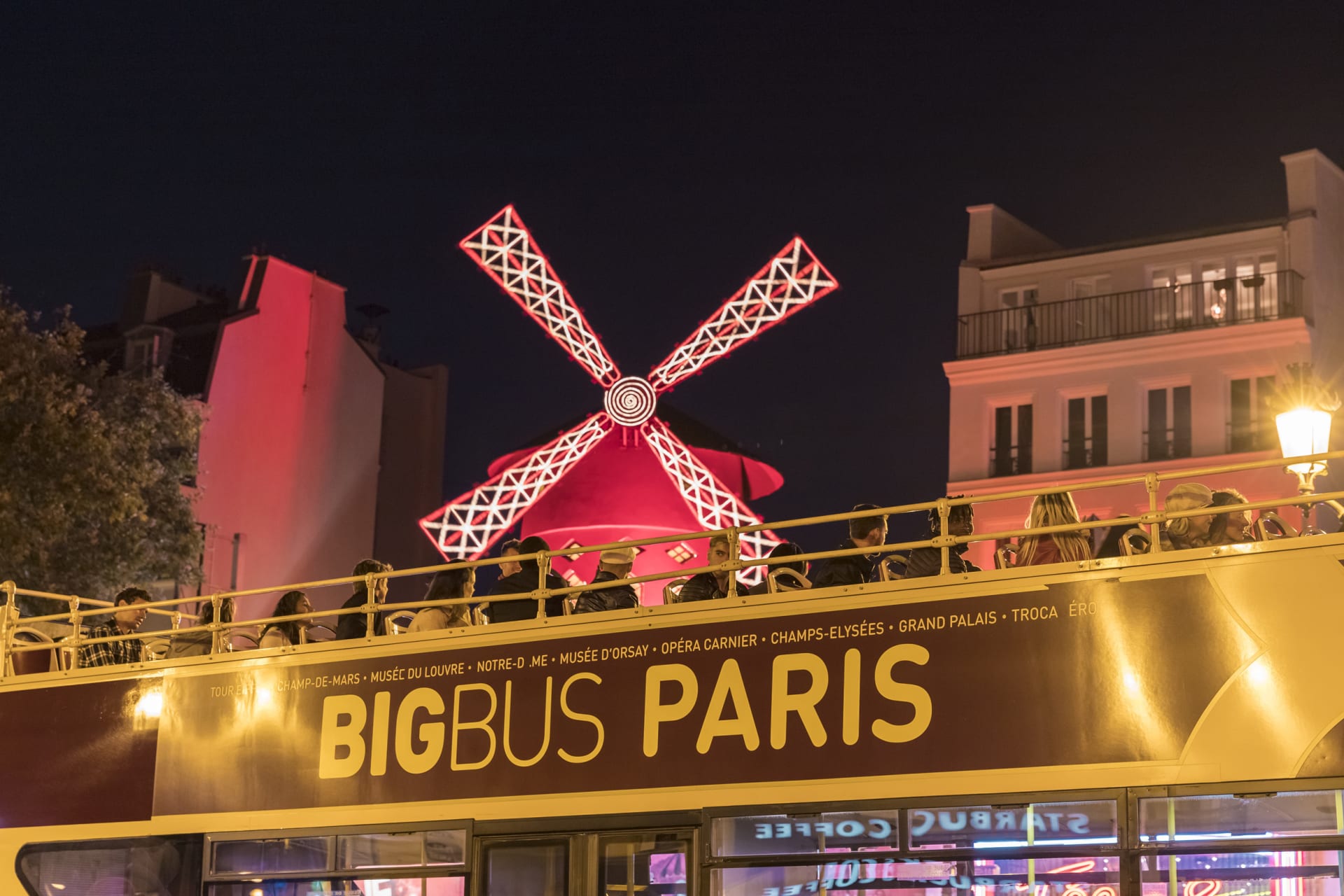 But that's just the beginning, you'll also pass by the legendary Moulin Rouge, the birthplace of the modern can-can dance. And for a truly breathtaking sight, witness the Eiffel Tower's dazzling diamond lights from the top deck of our Big Bus as you pass by up close.