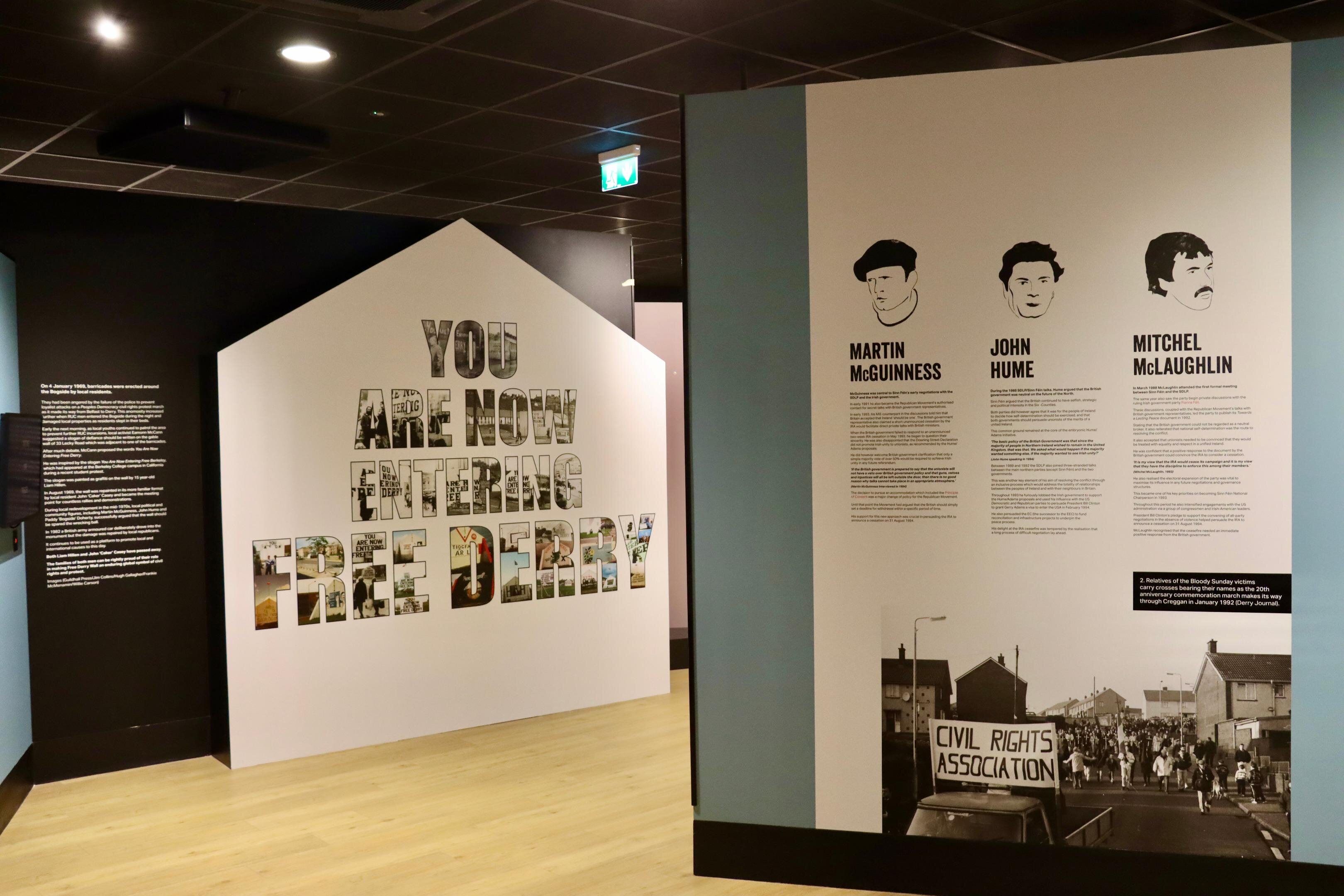 The Peacemakers Museum explores how the North of Ireland moved from decades of violent conflict to the peace we all enjoy and maintain today. Located in the famous Bogside area of Derry in the North of Ireland. The small working class area witnessed some of the key events of the conflict including the Battle of the Bogside and Bloody Sunday. The museum explores the period from August 1972 to May 2007 to explain how the conflict evolved into the peace process and the impact of both on the local area. The museum uses artefacts, oral history, archive footage, interactive features and unique displays to explain how the Agreement was reached, its implementation and its potential implications for the future of the island.