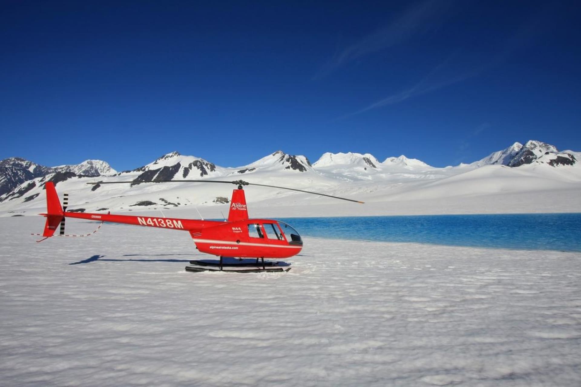 - Land atop a pristine glacier in the Chugach Mountains