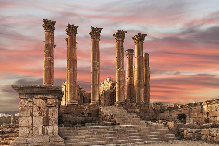 Explore Jordan’s Greco - Roman past and present-day capital on this 6-hour private trip to Jerash, with a panoramic tour of Amman. Start at classical Jerash, a crumbled Greco-Roman city dubbed the Pompeii of the East. With a local guide, view the well-preserved monuments, including the Oval Plaza, the Temples of Zeus and Artemis, and the Hippodrome, as well as the Colonnaded paved streets as you hear about this ancient Decapolis City. Then, take a panoramic tour of Amman’s top attractions including the Citadel viewpoint, the downtown souks, and views of the city's mosques, churches, and historical Jabal Al-Webdeih and Jabal Amman ancient quarters, besides proceeding to the new modern part of Amman’s capital.
