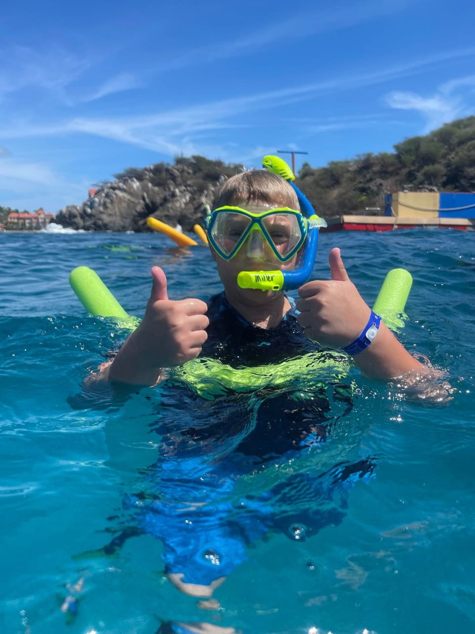 - Snorkel gear, paddle boards, and floating mat