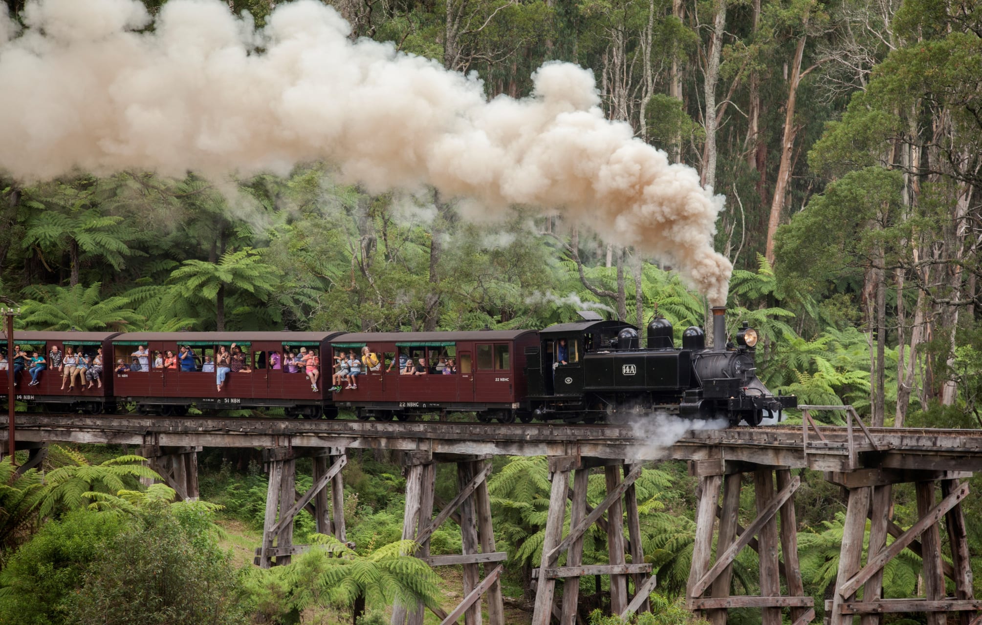 Your journey on the historic Puffing Billy will take you through towering gullies, under huge ancient ferns and up winding hills, revealing unforgettable views of the area.