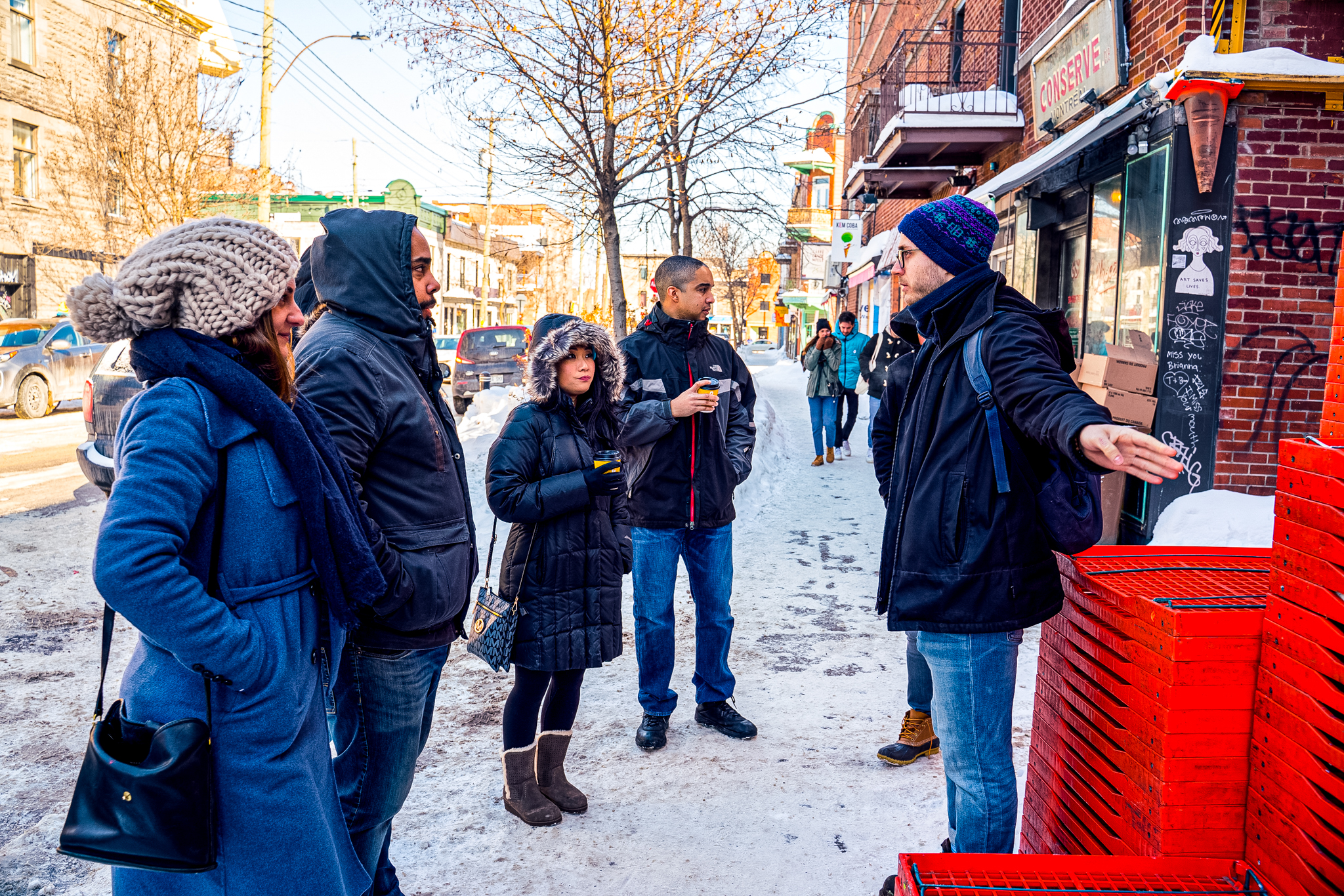 • To begin, your guide will meet you on the outskirts of Montreal’s artsy Mile End neighbourhood and welcome you with a taste of our delicious Secret Dish, representing the city’s diverse culinary influences.